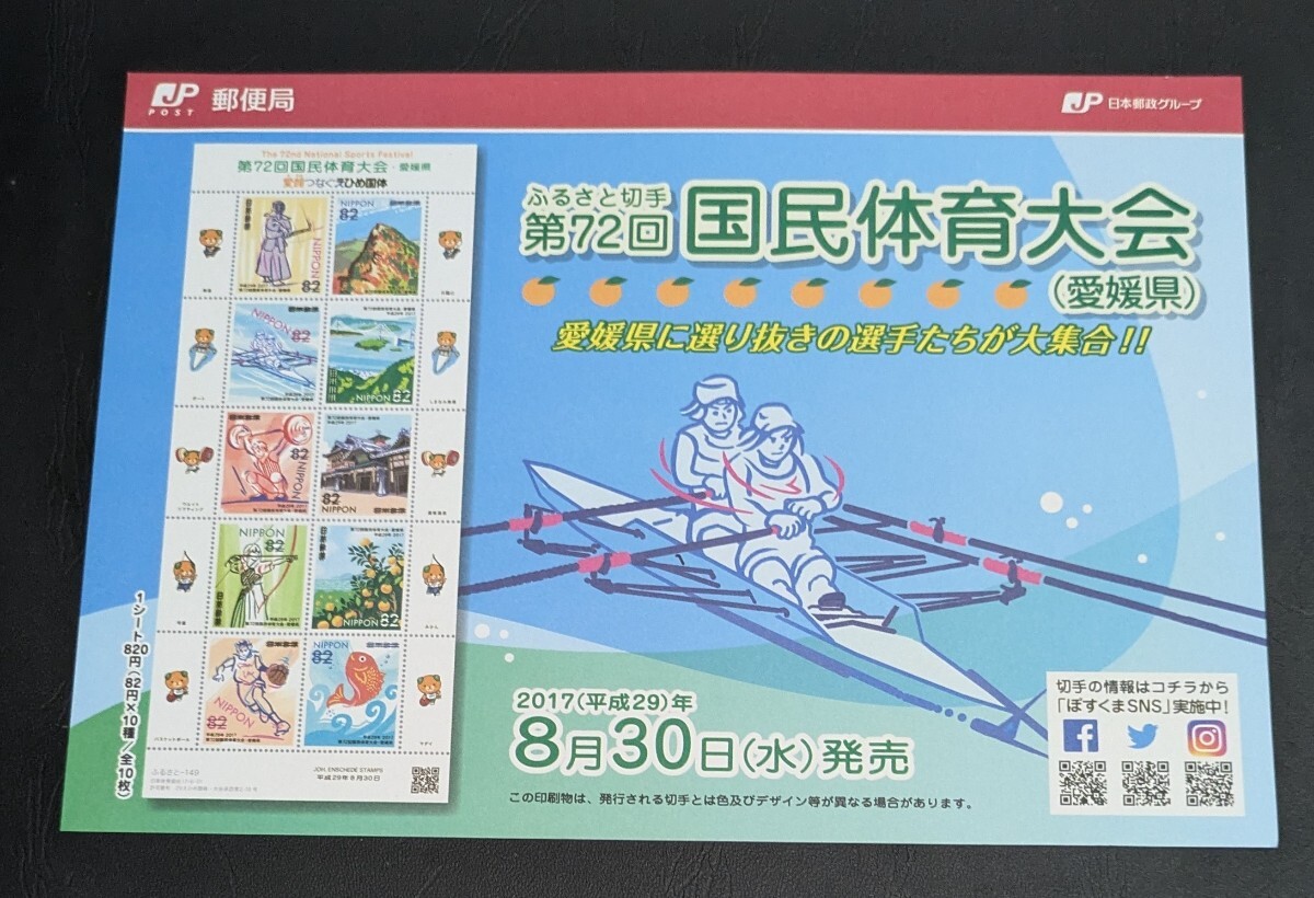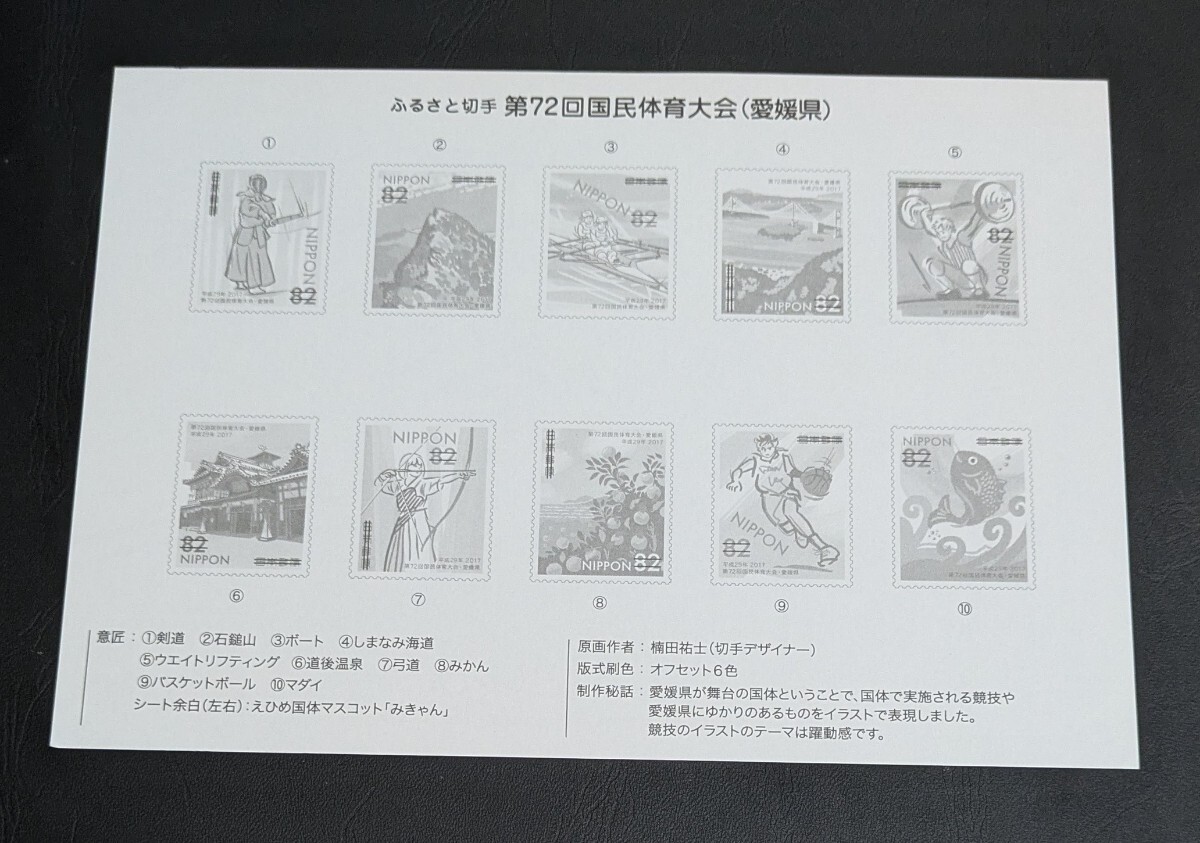 2017年・ふるさと切手-第72回国民体育大会シート(愛媛)解説書付