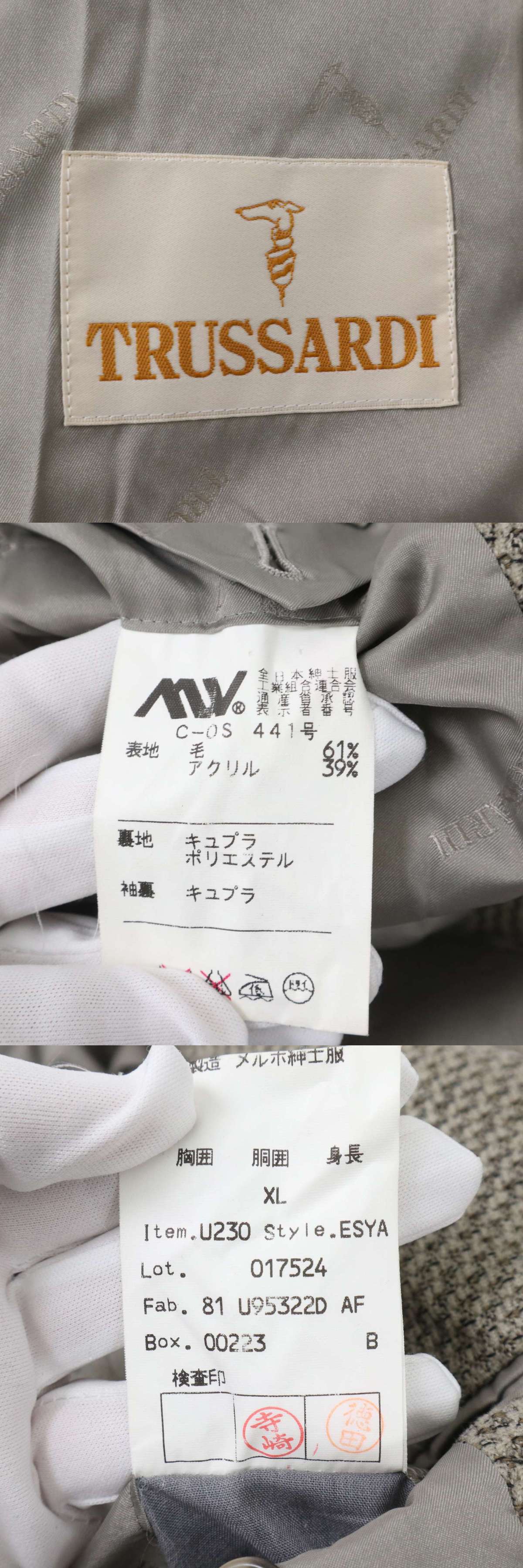 TRUSSARDI トラサルディ 秋冬 総裏 ウール★ ツイード テーラード ジャケット ブレザー Sz.XL メンズ 大きいサイズ