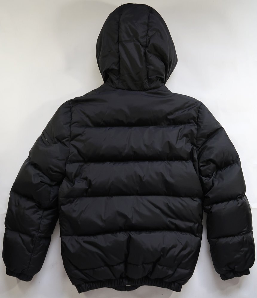 出品は画像の服のみです。使用品ですのでシワ、汚れや擦れはあります。金具は擦れによる色落ちなどあります。裏地の黒っぽい汚れがある箇所があります。画像をご覧ください。何箇所か糸つりのような箇所もあります。ひどい傷や目立つような汚れはないです。生地は表地がナイロン98%、ポリウレタン2%です。裏地はナイロン98%、ポリウレタン2%です。中わたはダウンです。サイズは着丈が69cmくらい、肩幅は44cmくらい、袖丈は63cmくらい、身幅は52cm位です。