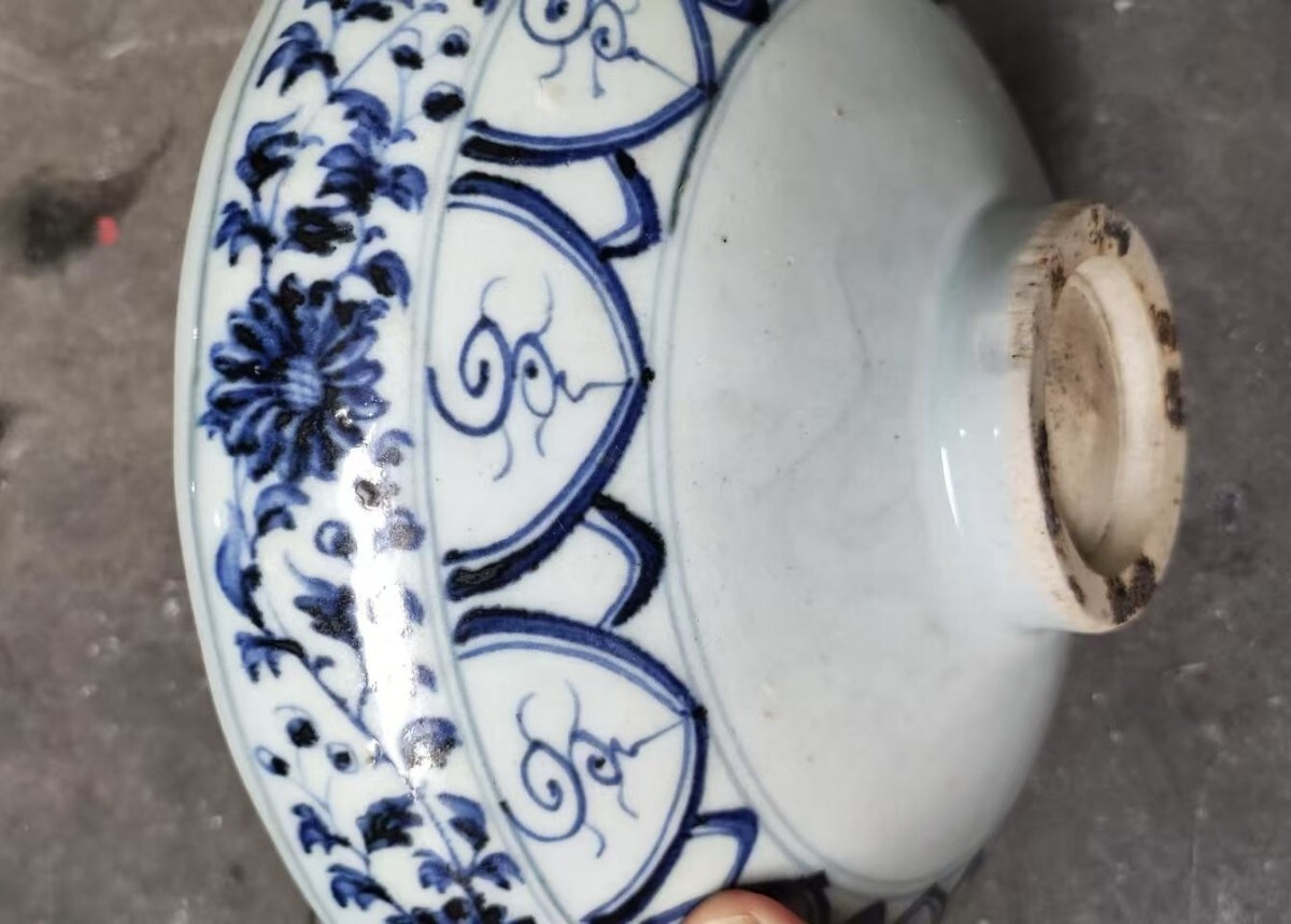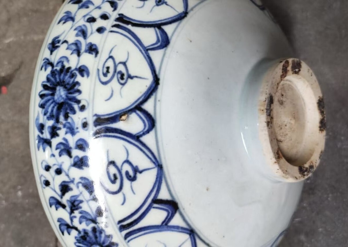 【萬藏】中国 明時代 青花 茶碗 骨董 古玩 中国美術 茶道具 当時物 骨董品 古玩 時代物 唐物 染付 古伊万里 bh35