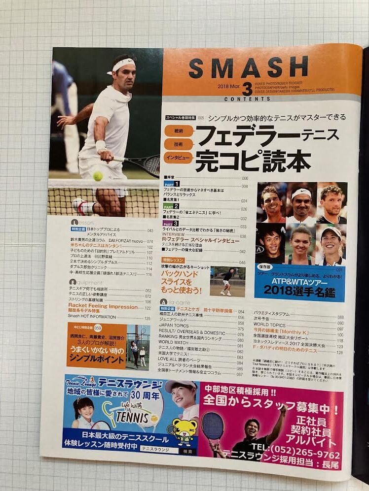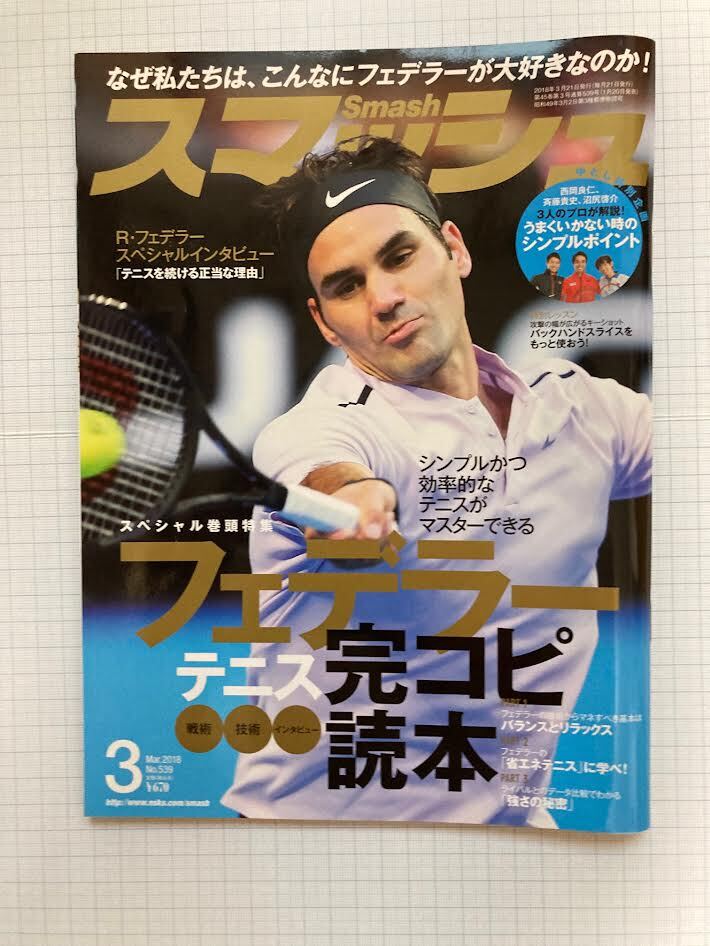 スマッシュ、Mar. 2018、テニス季刊誌、 フェデラーテニス完コピ 読本 他