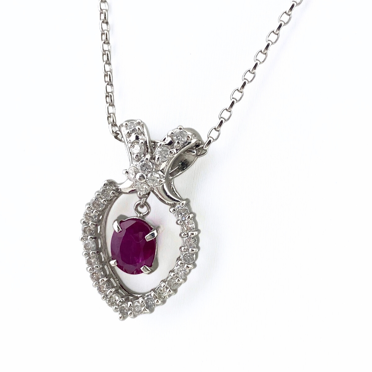 ルビー デザインネックレス プラチナ ペンダント メレダイヤ ダイヤモンド ネックレス Pt900 Pt850 ルビー レディース 【中古】 |