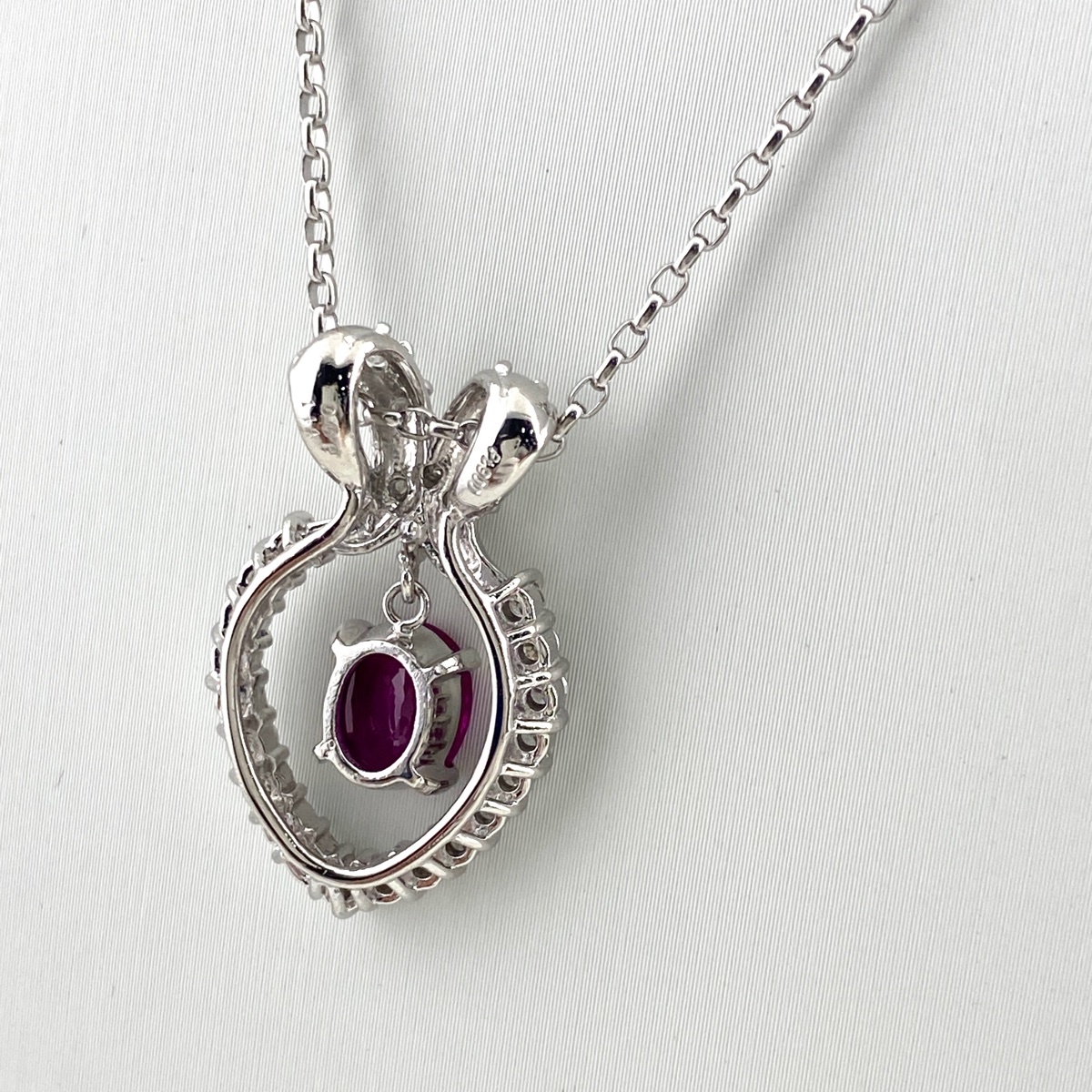 ルビー:1.44ct、メレダイヤ:0.68ct トップ:Pt900、チェーン:Pt850 中古品の為、若干のキズや汚れがございます。 ※ルビーのモチーフが揺れます。 |