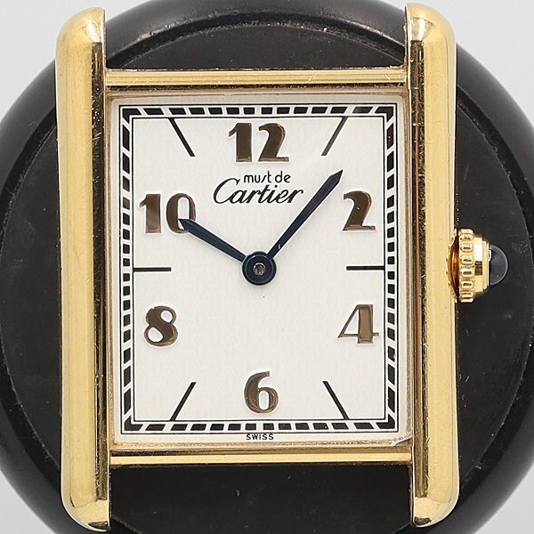 デッドストック級 カルティエ マストタンク ヴェルメイユ 白文字盤 SV925 QZ スクエア レディース腕時計 OGH 301ABC0190710