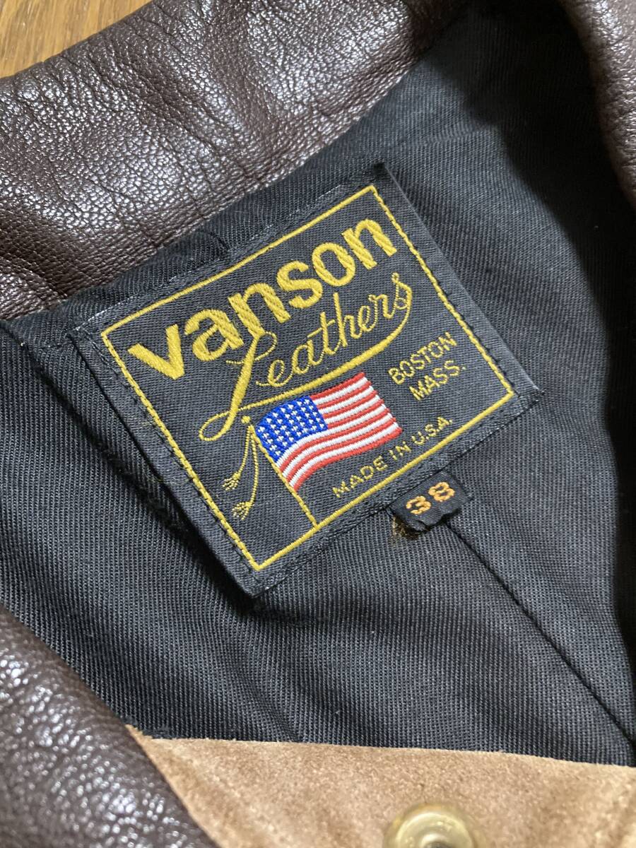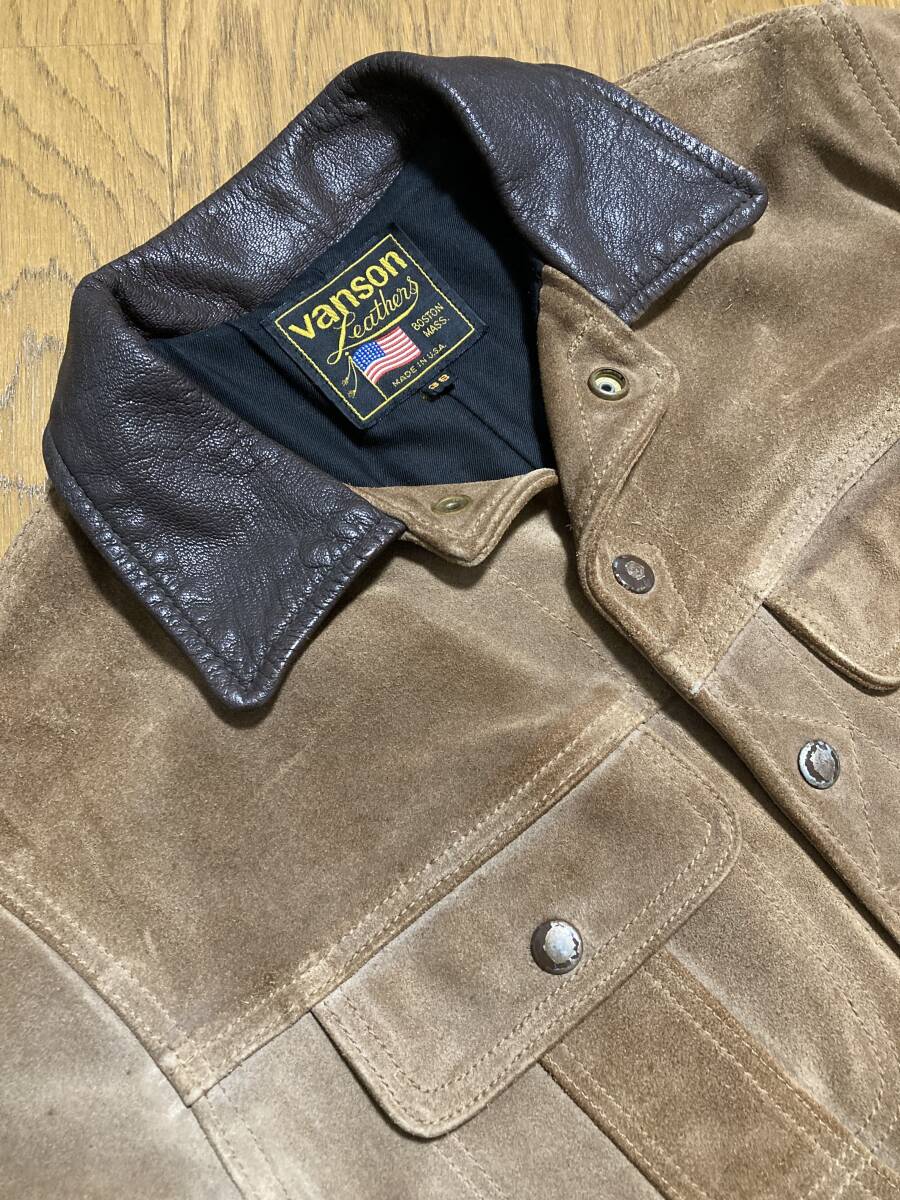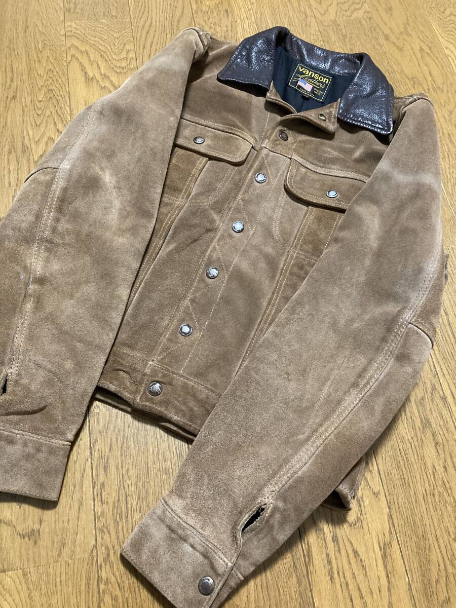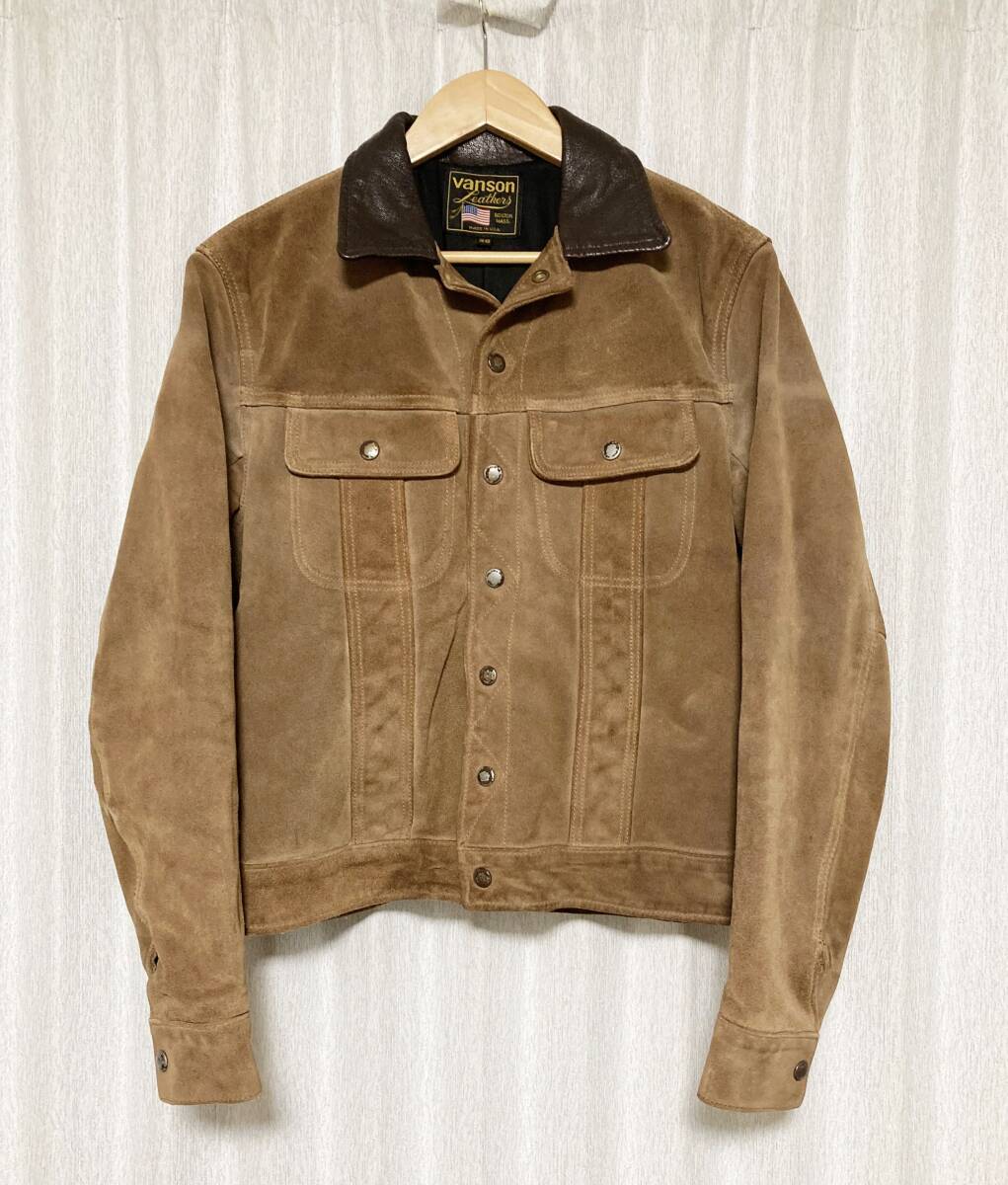 [VANSON] DJCV 3rd トラッカー スウェードレザージャケット ライダース 38 ブラウン USA製 バンソン