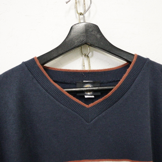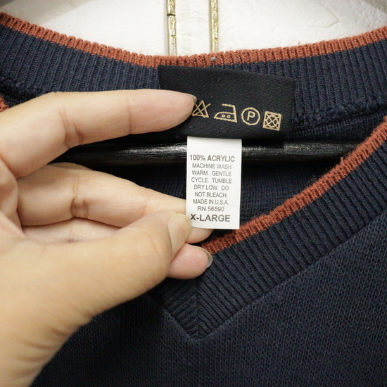 商品名 C775 90sビンテージ CLAVE アクリルニットセーター USA製■1990年代製 表記XLサイズ ネイビー 紺 古着 アメカジ ストリート ボーダー 80s