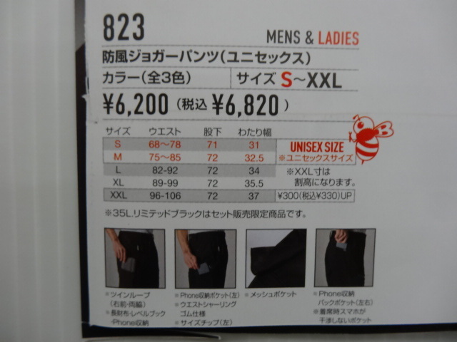 バートル823 2025年秋冬用新商品 防風ジョガーパンツ ストームグレー Lサイズ 3380円(税込み)