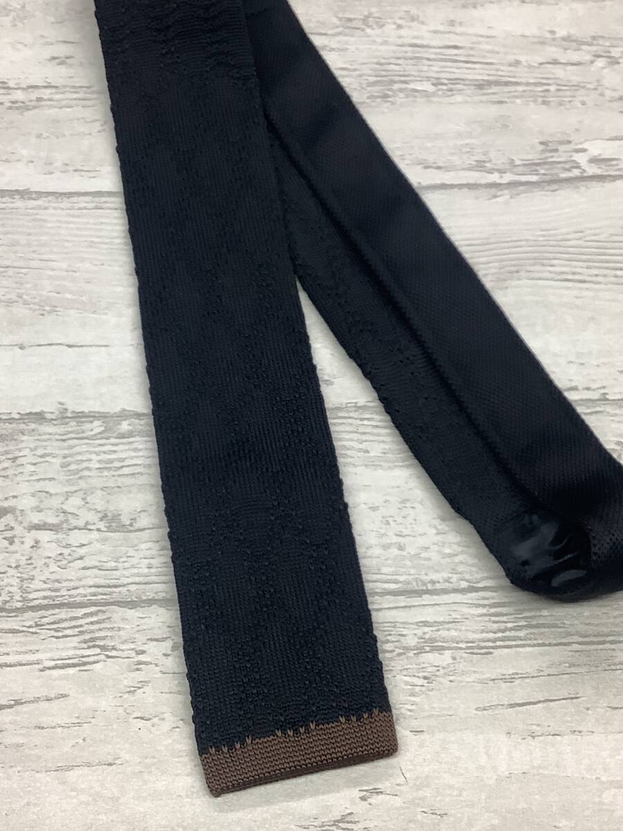 新作 新品未使用 可愛いワンポイントライン入り ニットタイ 黒ブラック ブラウン 大剣6cm お買い得サービス