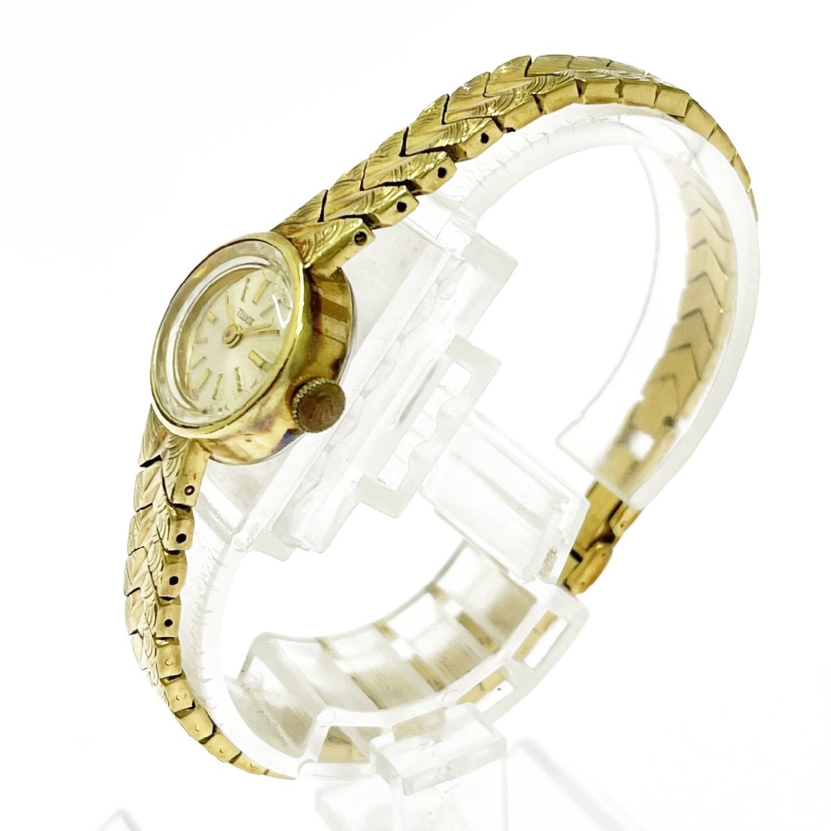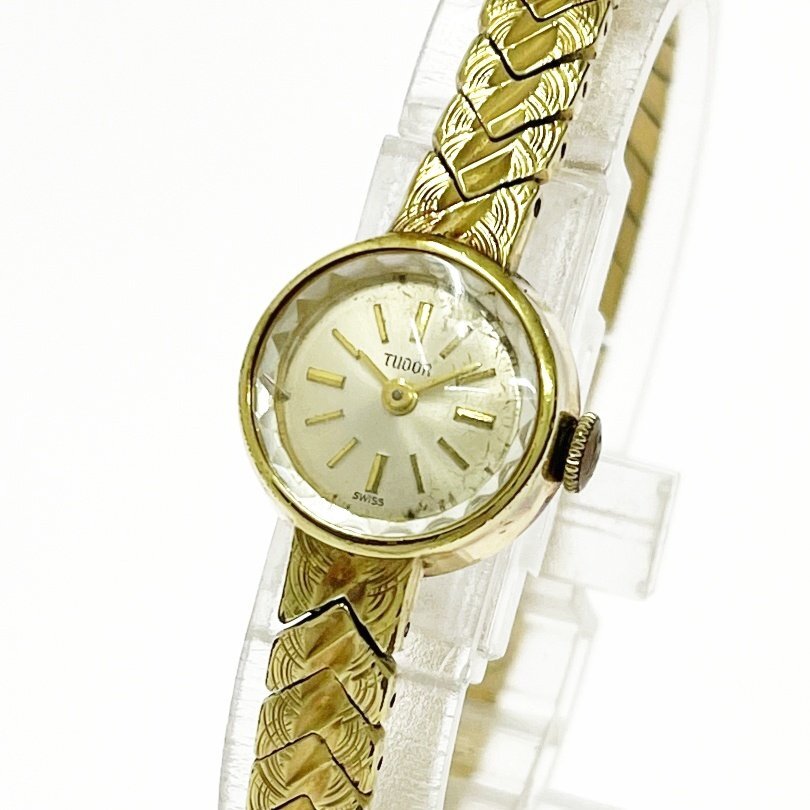 【1円スタート】TUDOR チュードル カットガラス ラウンド GP×SS 手巻き レディース腕時計 480418
