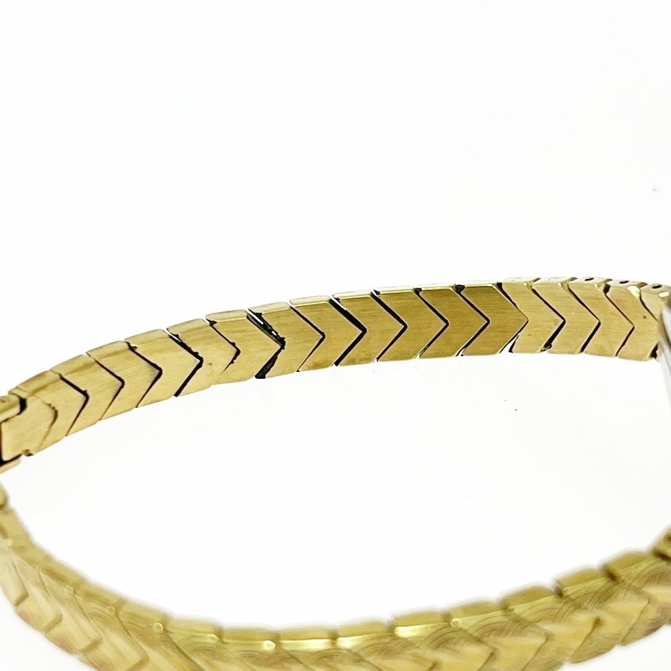 ※裏蓋に保護シートが付着しています。リューズがやや浮いています。ベルトのコマに動きの固い箇所がございます。