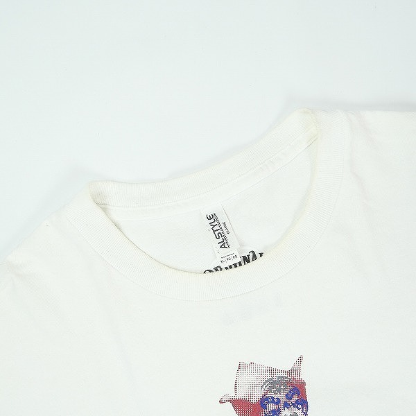 状態説明 | 着用感があり、ボディ全体に毛羽立ちや色褪せがあります。首回りや袖口に黄ばみがあります。フロントに5mm程度のシミがあります。 |