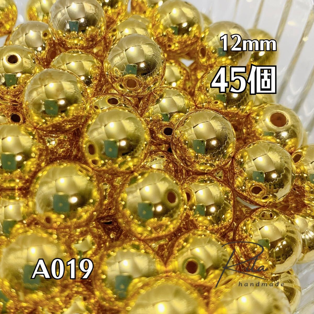 【45個】ゴールド CCBプラスチックビーズ 12mm 両穴 ハンドメイド アクセサリーパーツ