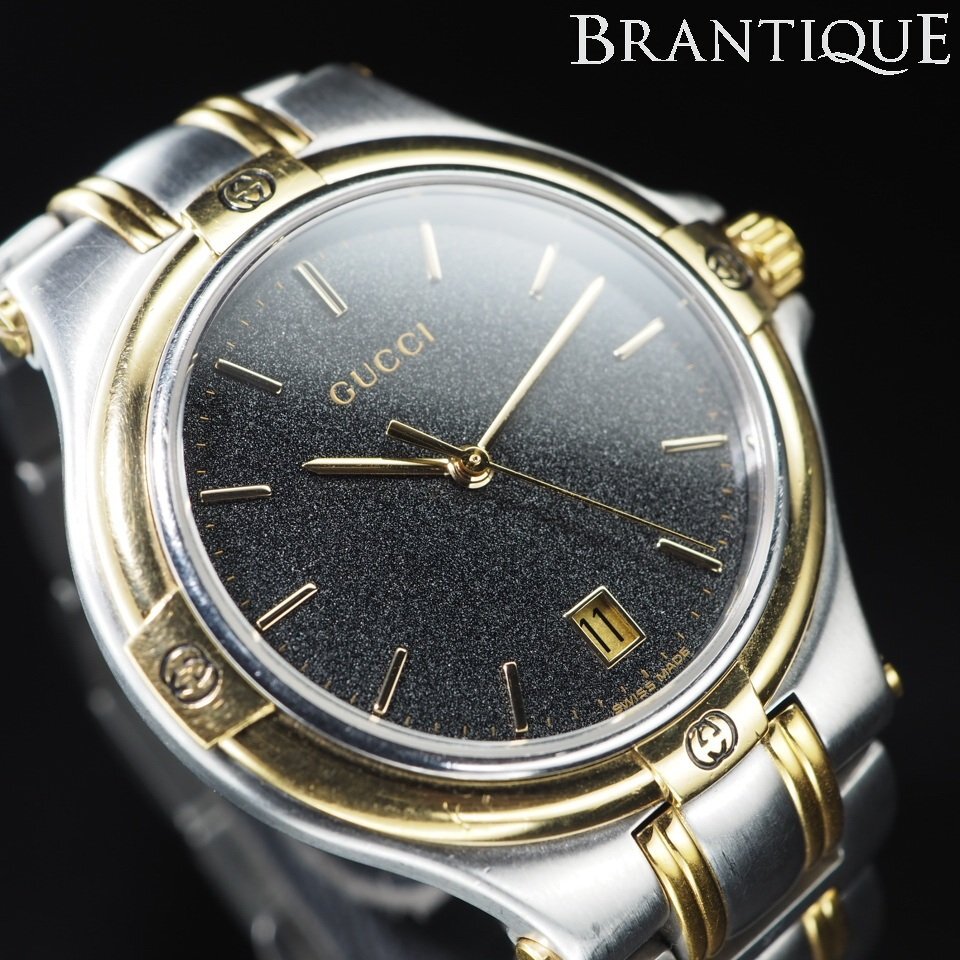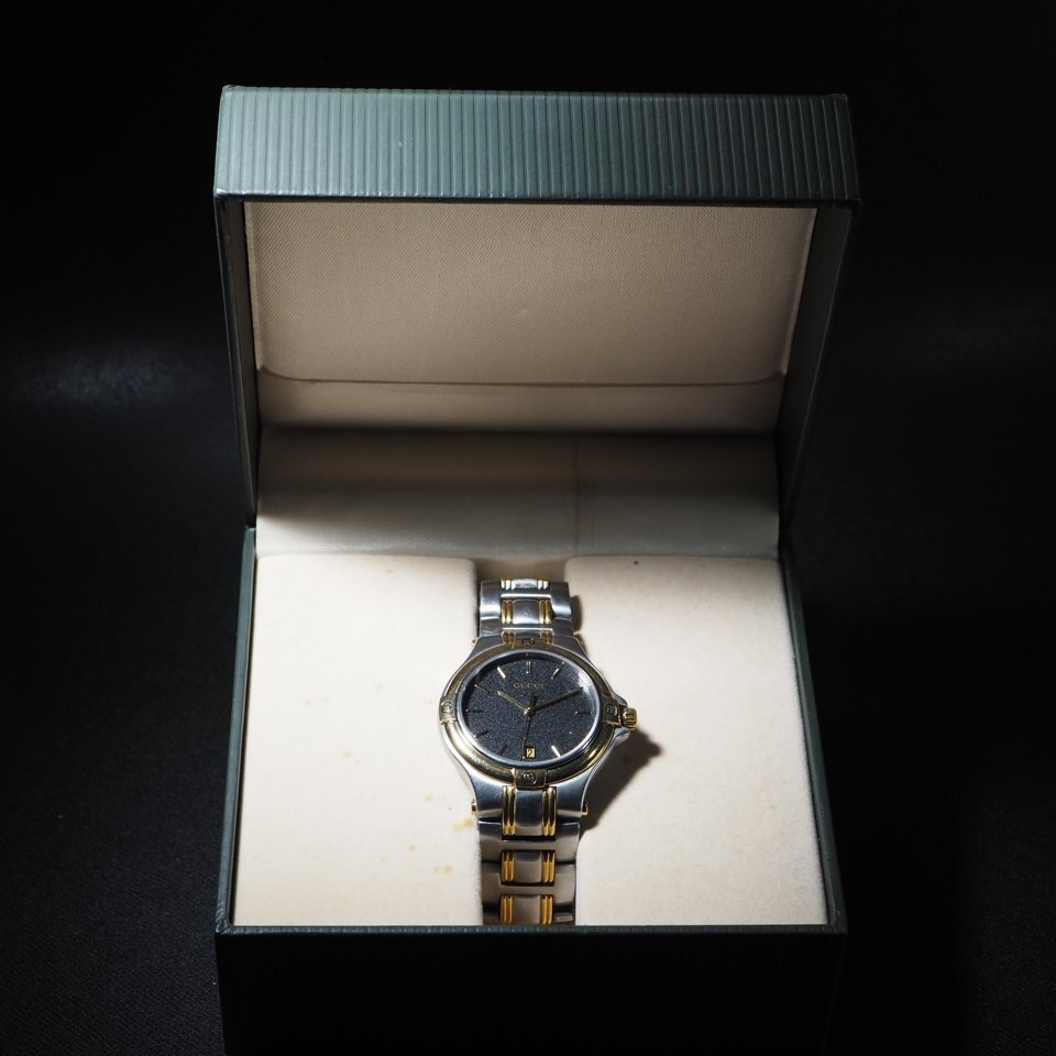 ◆即決あり◆ GUCCI グッチ 9040M GP/SS QZ オールドグッチ 3針 デイト 箱 USED 稼働 メンズ 腕時計 「27644」