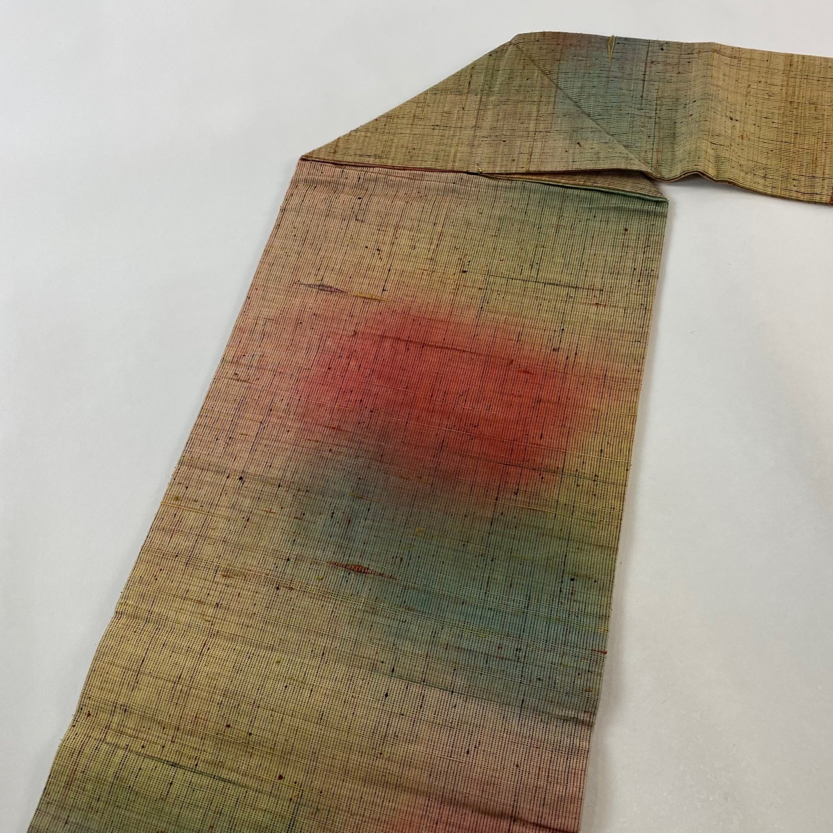 | 名古屋帯 美品 秀品 紬地 ぼかし柄 抹茶色 正絹 【中古】 |