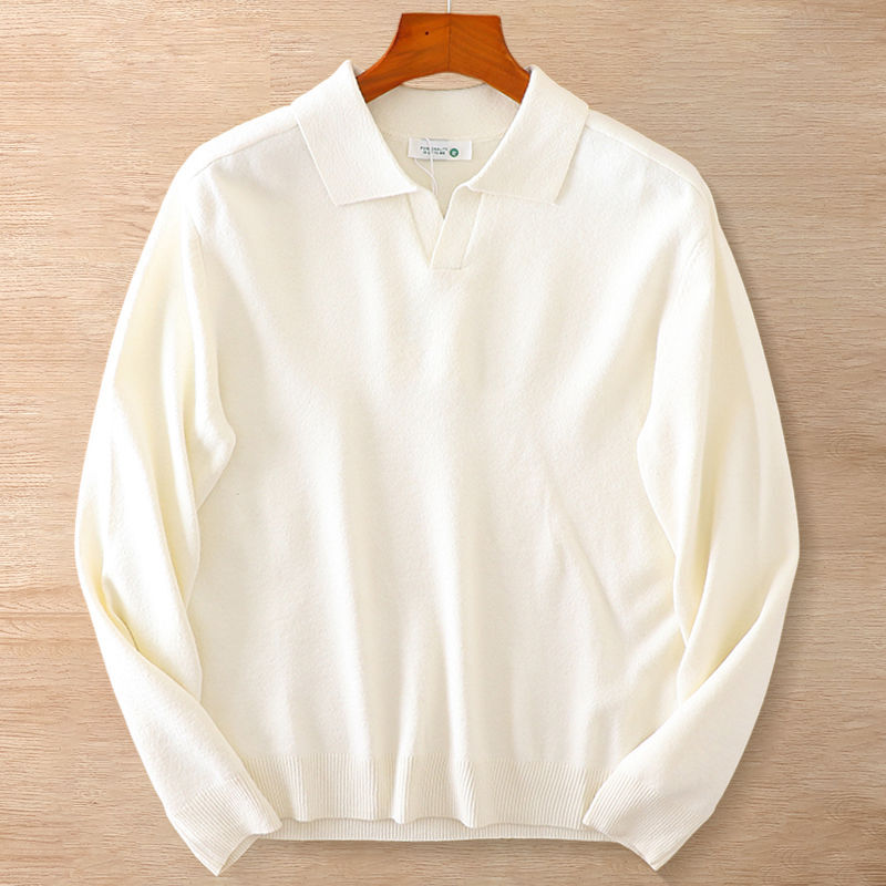 Y6449-M ベージュ 新品 ニット セーター ウール混 スキッパー ふんわり ウォッシュ加工 暖かさ 秋冬 厚手 ビジネス メンズ トップス
