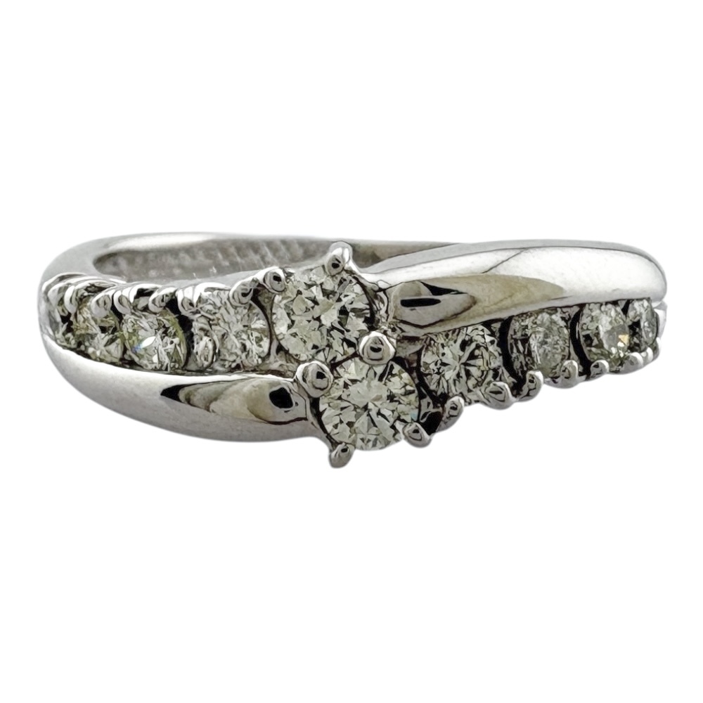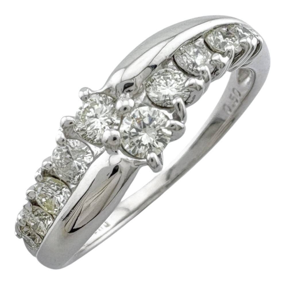 | 緩やかなウェーブラインに、大小さまざまなダイヤモンドを贅沢に配した華やかなリングです。プラチナのようなクールな輝きが、指元を美しく見せ、洗練された印象を与えます。 1点限りの商品ですのでお早めにどうぞ。 ※画像上と実物では多少色具合が異なって見える場合もございます。※尚、本品は中古品の為、気にならない程度の小キズがある場合がございます。 当ストアの商品は他のショッピングサイトや全国のリサイクルキングでの同時販売を行っている為、商品欠品によるご落札のキャンセルをさせて頂く場合がございますので予めご了承下さい。 |