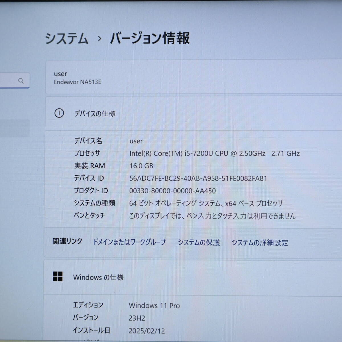 ★超美品 高性能7世代i5!新品SSD256GB メモリ16GB★NA513E Core i5-7200U Webカメラ Win11 MS Office2019 H&B ノートパソコン★P89684