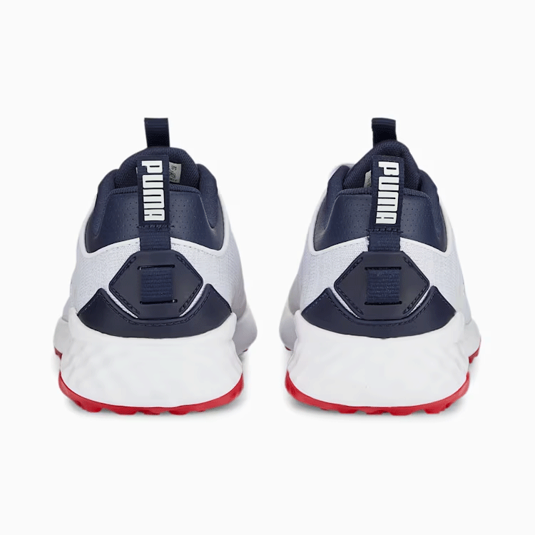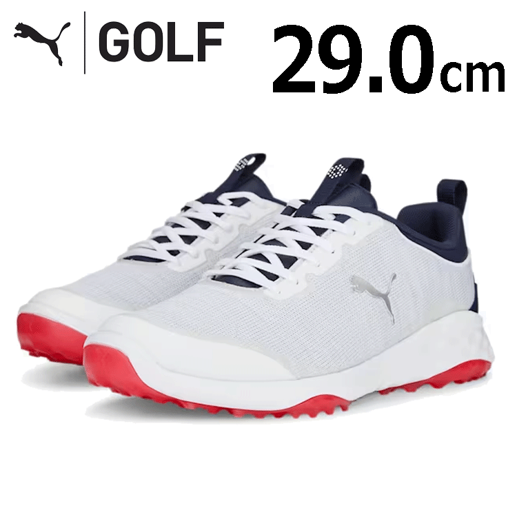 【商品特徴】 シンプルでクリーンな美しいフォルムのスパイクレスゴルフシューズです。 適度な柔らかさでさまざまな動きにフィットするニットアッパーに、長時間快適な履き心地を維持してくれるFUSION FOAMを使用しています。 ファッション性のあるデザインと高いサポート力は、練習やプレーだけではなくあらゆるシーンに最適な一足です。 ■FUSION FOAM:ソフトEVAフォームと高反応ラバーの組み合わせが反発エネルギーとクッション性を同時に実現し、長時間に渡って快適性を維持 ■ニットアッパー ■サイドにプーマキャットロゴ ■ヒールのプルタブにプーマロゴ 【商品詳細】 ●状態:新品・未使用品 ●品番:377041 ●素材:合成繊維+合成樹脂(ポリウレタン)+人工皮革、合成樹脂(EVA樹脂)、ゴム底 ●カラー:PUMA White-PUMA Navy-For All Time Red(06) ●サイズ:29.0cm ●重量:約356g(27cm) ※撮影時の光量の具合や、ご覧いただいております画面環境によりまして、実際の商品と若干色味が違う場合がございます。