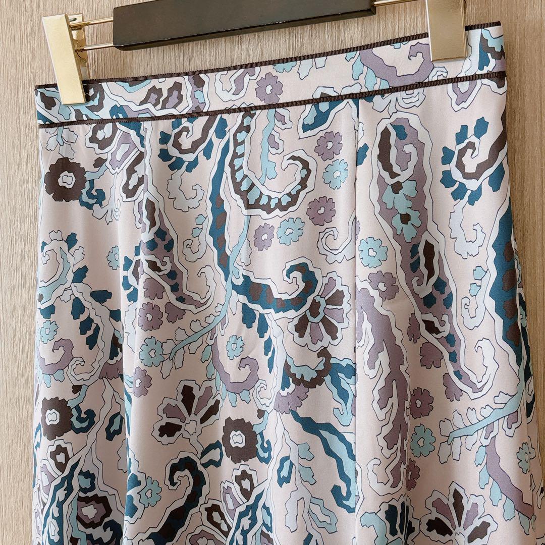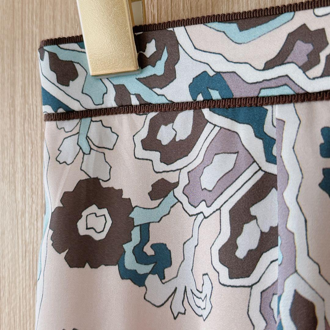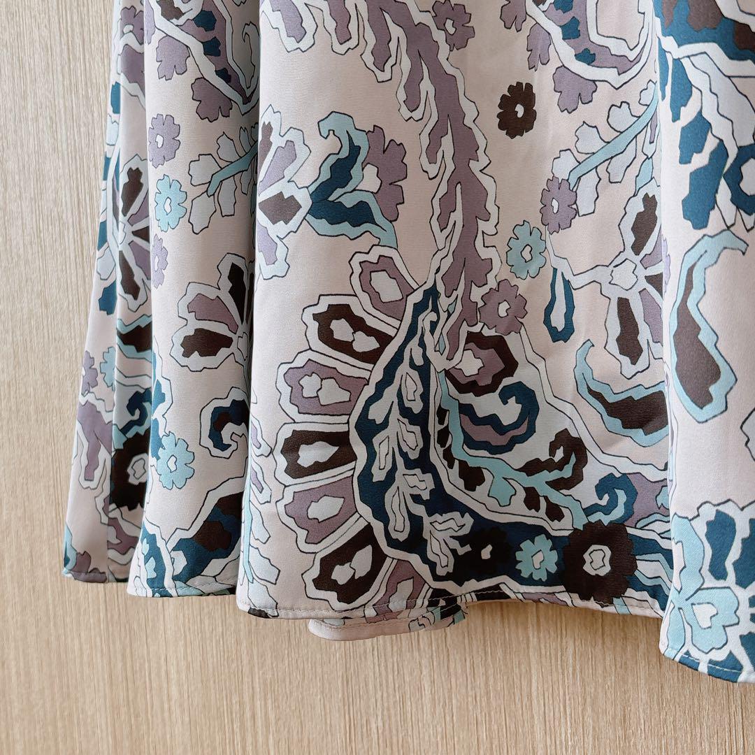 イタリアインポートのプリントは、ペイズリーをモダンに幾何柄にし、更にサテンで光沢としなやかさのあるエレガントな素材です。