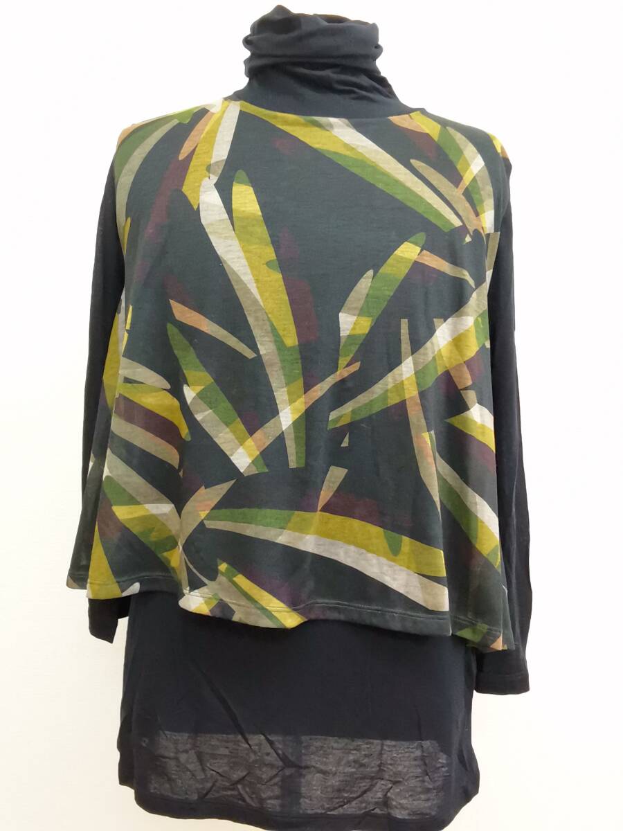 sensounico センソユニコ&EYCIAトップスカットソー古着レディース40チュニックハイネック春秋長袖レーヨンウールEY-9-4