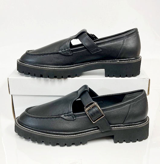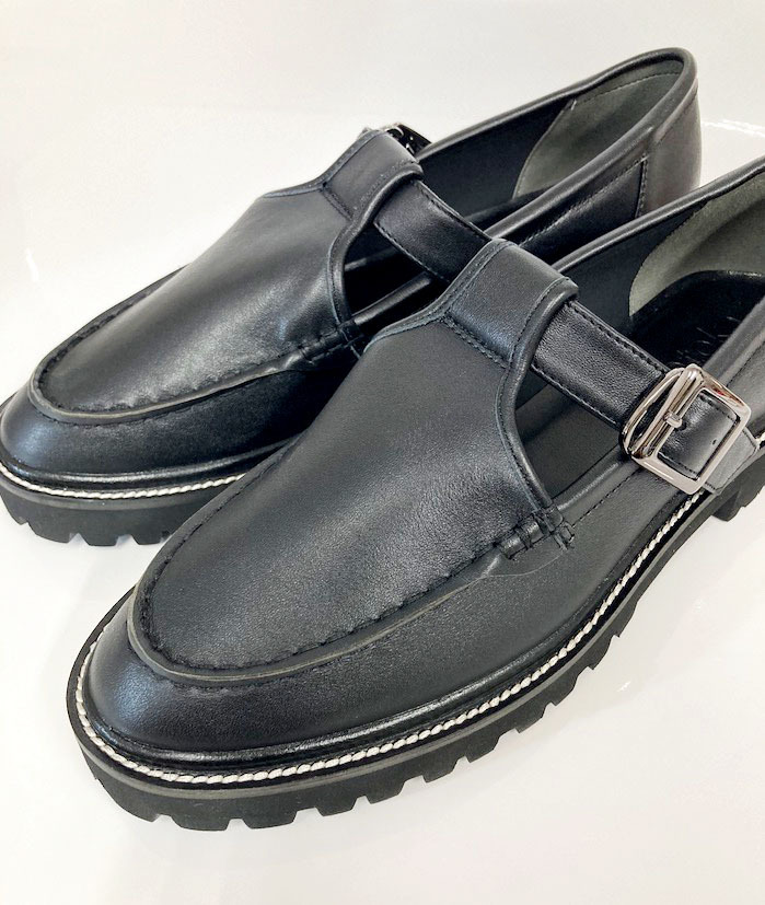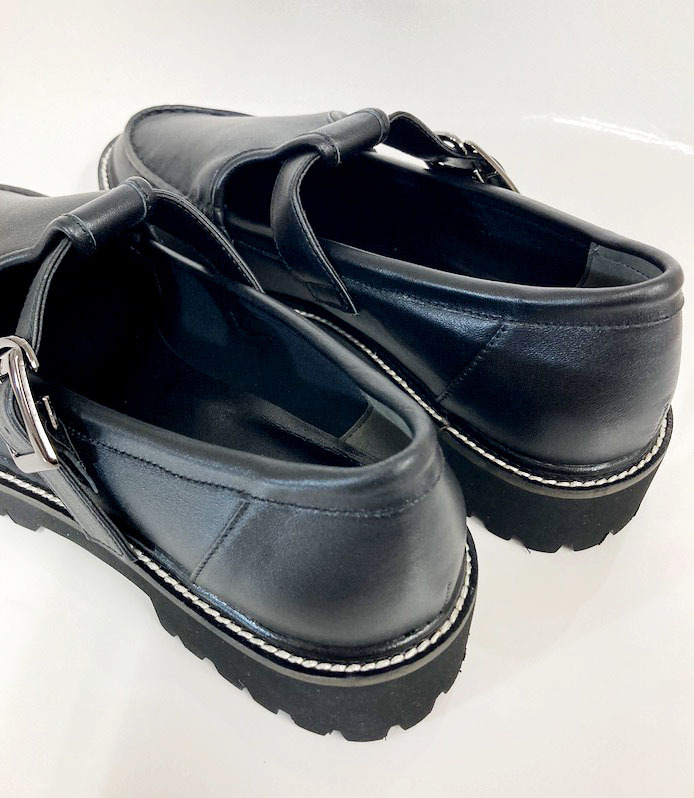 しっかりとしたラバーソールで安定感があり、カジュアルからモードまで幅広く合わせやすいデザインです。サイドにはバックル付きでアクセントになっています。