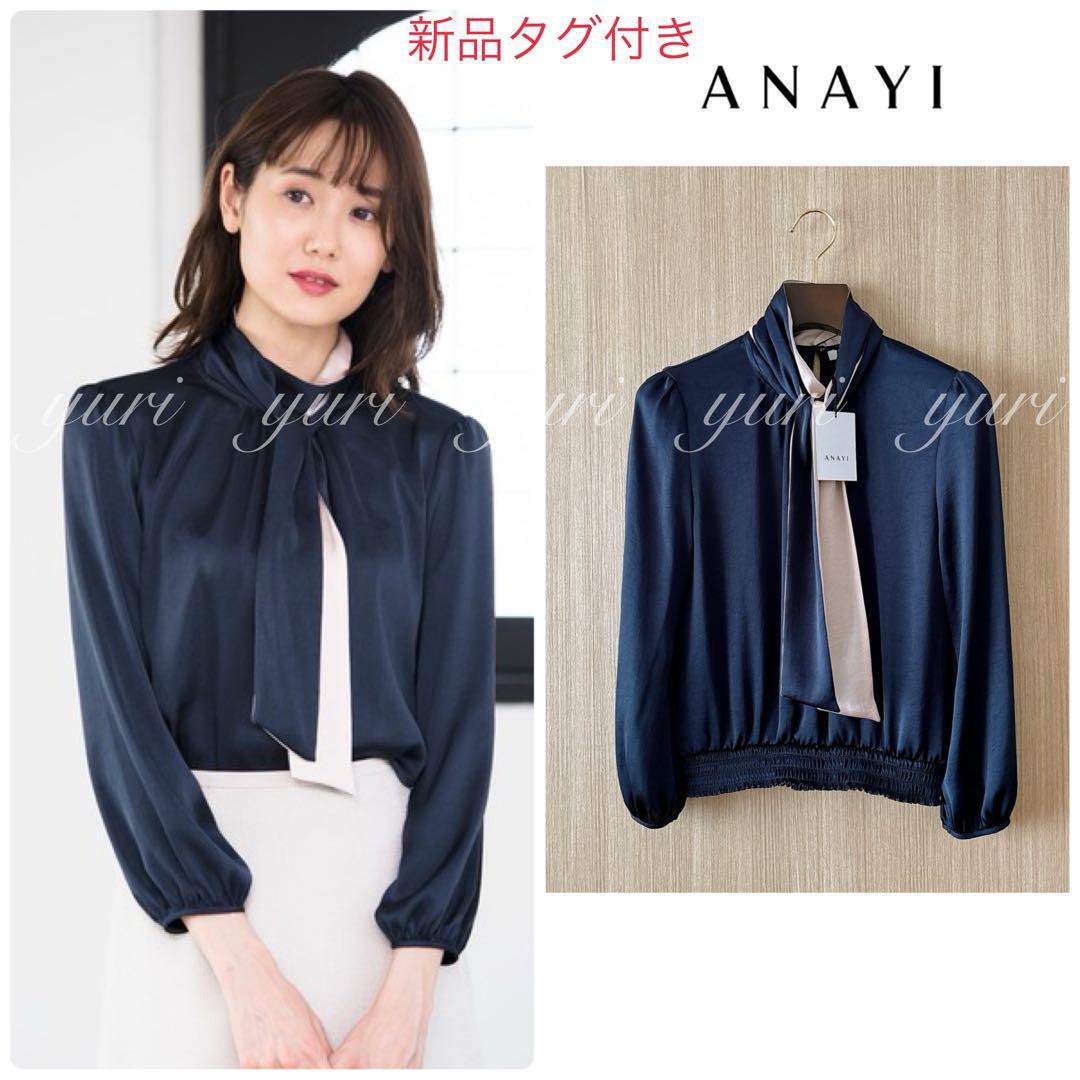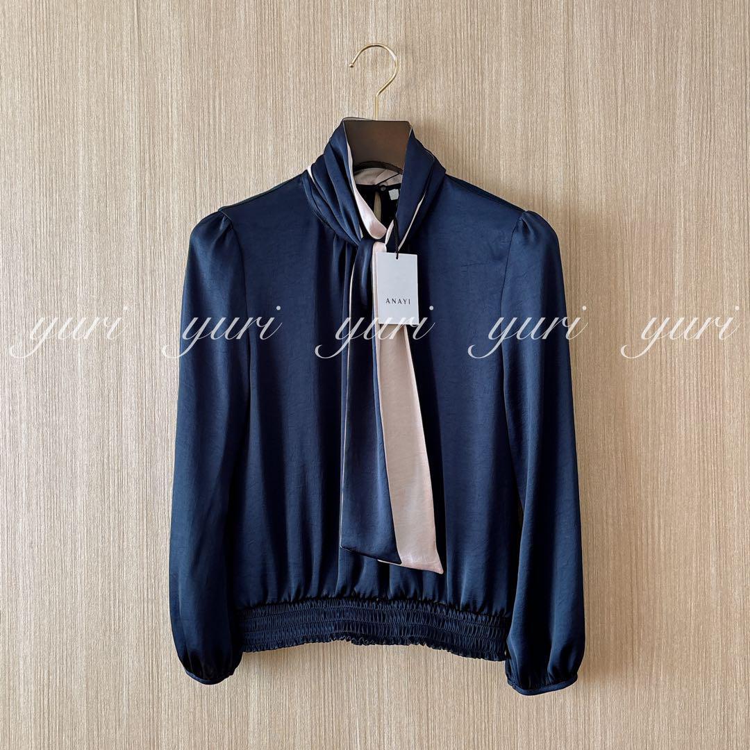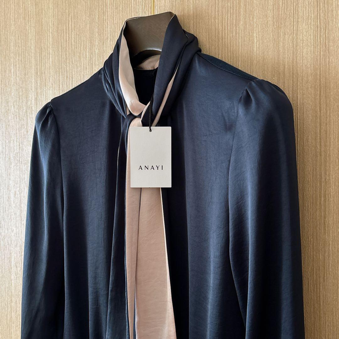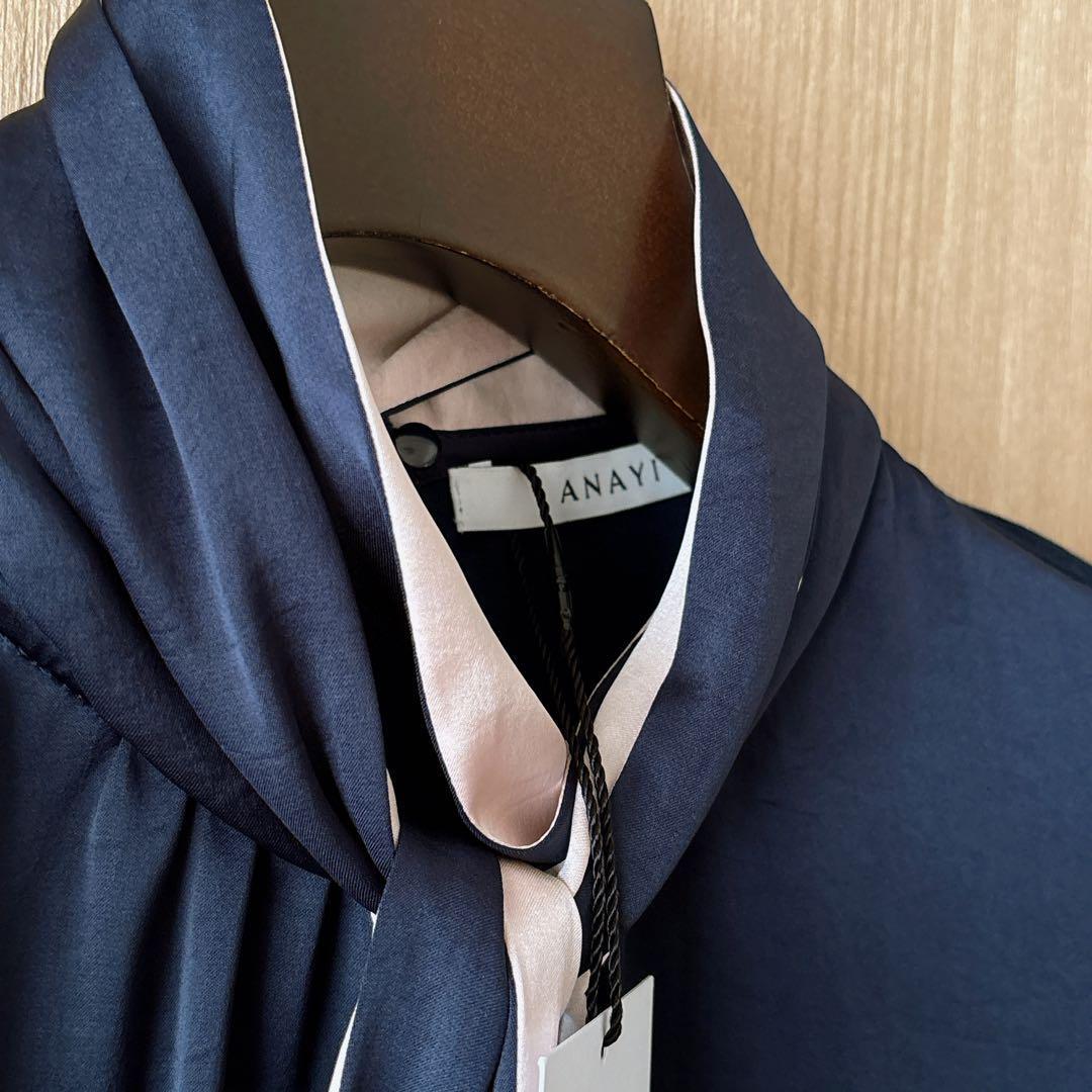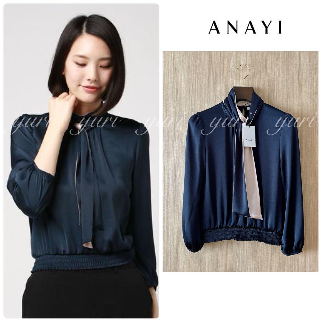 【255】新品 アナイ サテンスムースボウタイ プルオーバー 濃紺 36