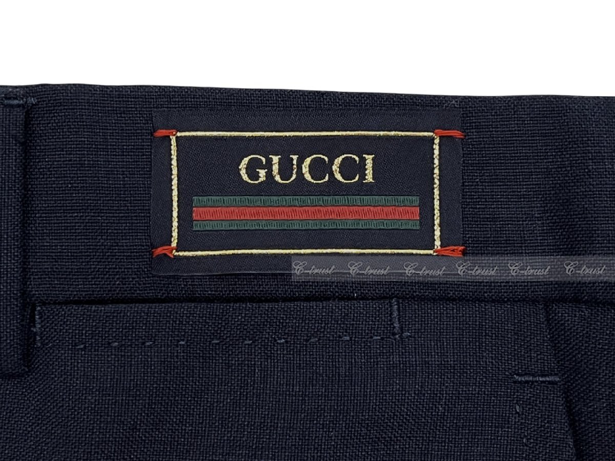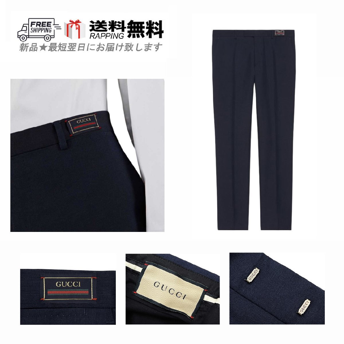 L368-46.. GUCCI グッチ パンツ ボトムス スラックス パッチ タグ フォーマル コットン モヘヤ イタリア製 ★ ネイビー