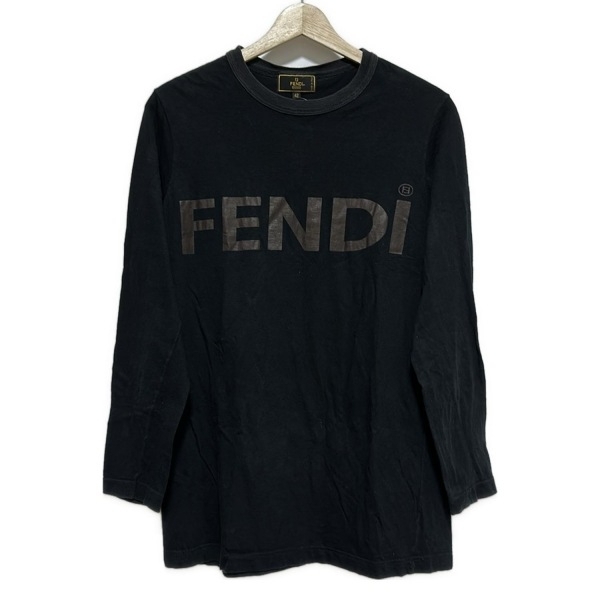 フェンディ FENDI 長袖Tシャツ サイズ42 M - 黒×ダークブラウン レディース クルーネック トップス