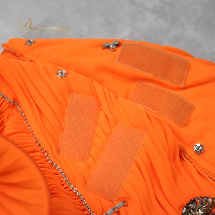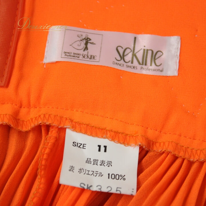 | 【商品名】社交ダンス衣装 スカート 【サイズ】11号 平置き実測:総丈約65cm※裾の一番長い所、横幅約102cm~ ※実測の為、多少の誤差はご容赦願います 【仕様】 ・巻きスカート仕様 ・伸縮性無し ------------------------------------ 【ポイント】 ▽SEKINE セキネ 日本製 ▽瞳を射すような蛍光オレンジ ▽華やかスパンコール&ラインストーン ------------------------------------ 【撮影時使用トルソー】 種 類:女性用トルソー9号 (一般的に使用されるサイズです) サイズ:肩幅約37cm、バスト約88cm、ウエスト約66cm、ヒップ約89cm |