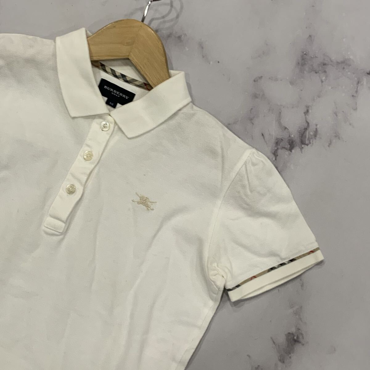 CC ▼ ゴルフウェア'日本製' BURBERRY バーバリー GOLF 半袖 ロゴ刺繍 ポロシャツ M レディース トップス 婦人服
