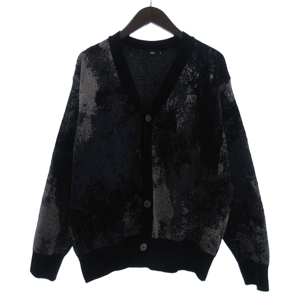 ハレ HARE アブストラクトガラカーディガン 長袖 Vネック 総柄 ラメ HA020796AD 黒 ブラック S メンズ