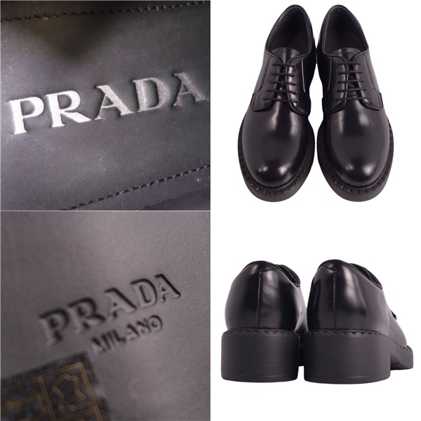 | 未使用 プラダ PRADA レザーシューズ ダービーシューズ レースアップ 革靴 レースアップ レディース 35.5(22.5cm) 黒 |
