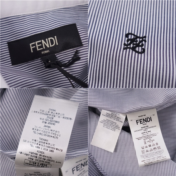 未使用 フェンディ FENDI シャツ 2021 ロングスリーブ 長袖 ストライプ コットン トップス メンズ 41 グレー |