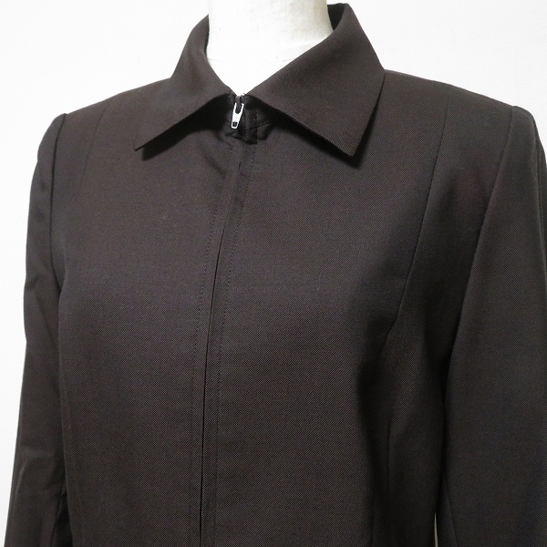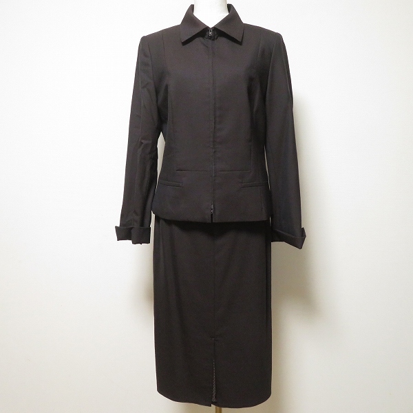 #anc レリアン Leilian スカートスーツ セットアップ 9 茶 ジップアップ ドット リボン ロング レディース [965522]