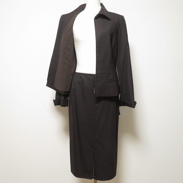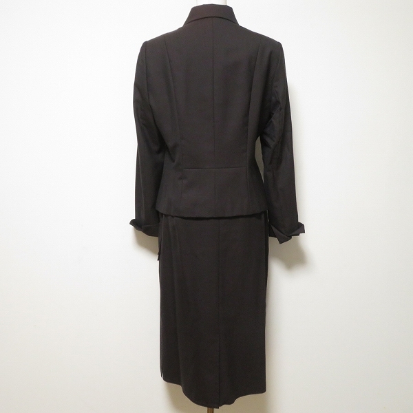 ●商品名(タイトル):#anc レリアン Leilian スカートスーツ セットアップ 9 茶 ジップアップ ドット リボン ロング レディース [965522]