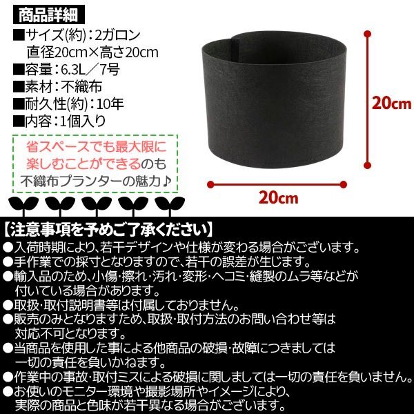 不織布プランター 不織布ポット 2ガロン 7号 不織布 プランター 植木鉢 大型 鉢 フェルトプランター 軽い