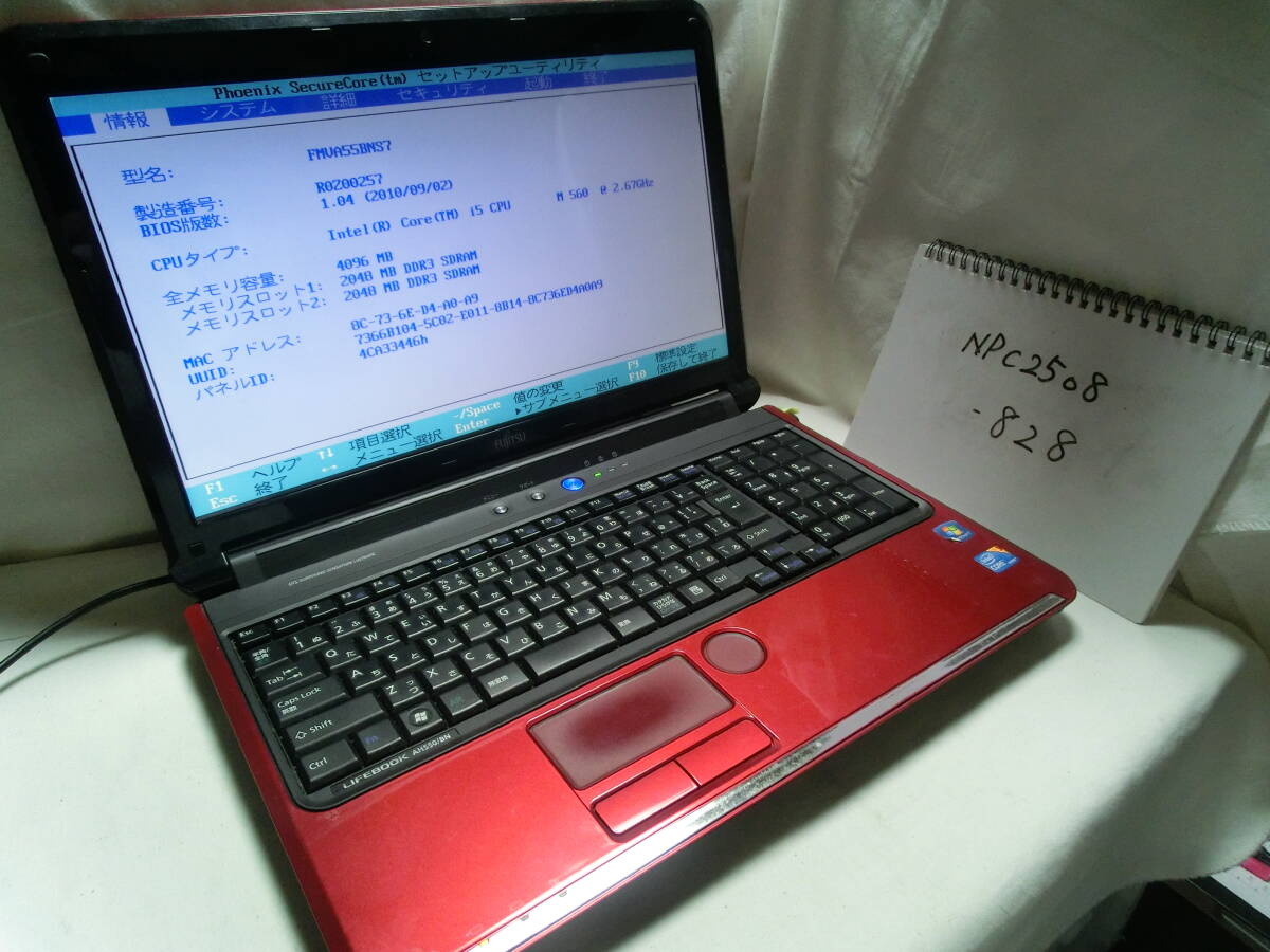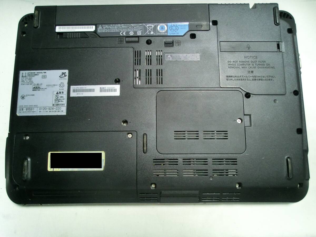 【ジャンク扱い】FUJITSU LIFEBOOK AH550/BN FMVA55BNS7(動作確認済)/Intel Core i5-M560/メモリ4GB/640GB HDD/-/管:NPC2508-828