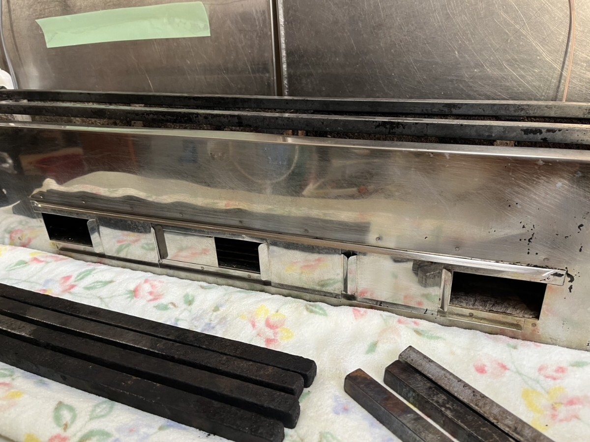 ○ 炭火焼き用 焼き鳥台 串焼き台 ステンレス製 コンロ W900 D180 通風口3箇所 中古品 厨房 設備 キャンプ BBQ などに! ④
