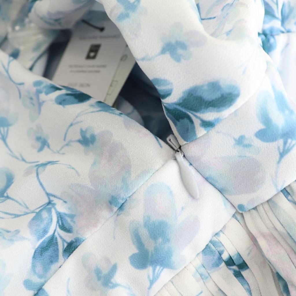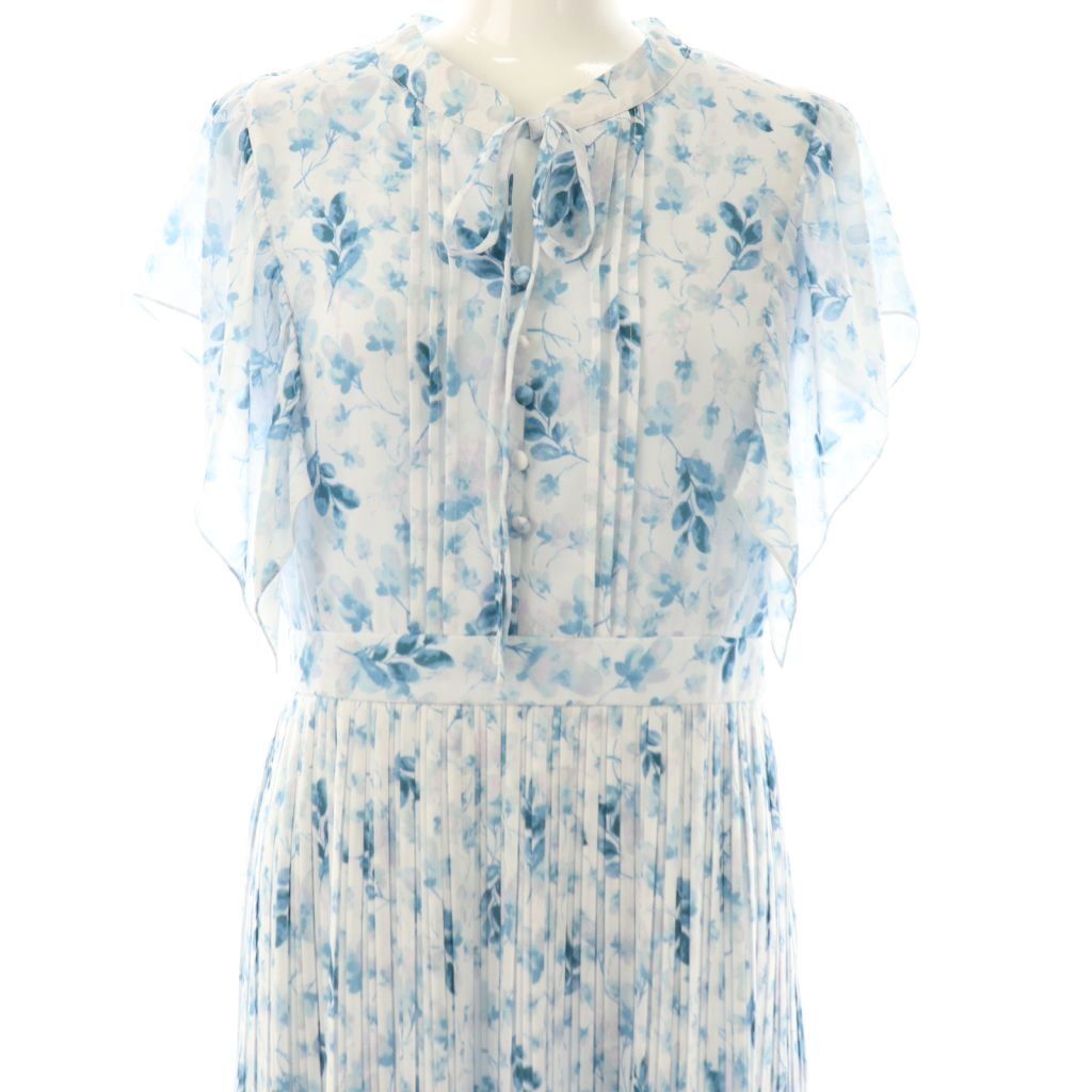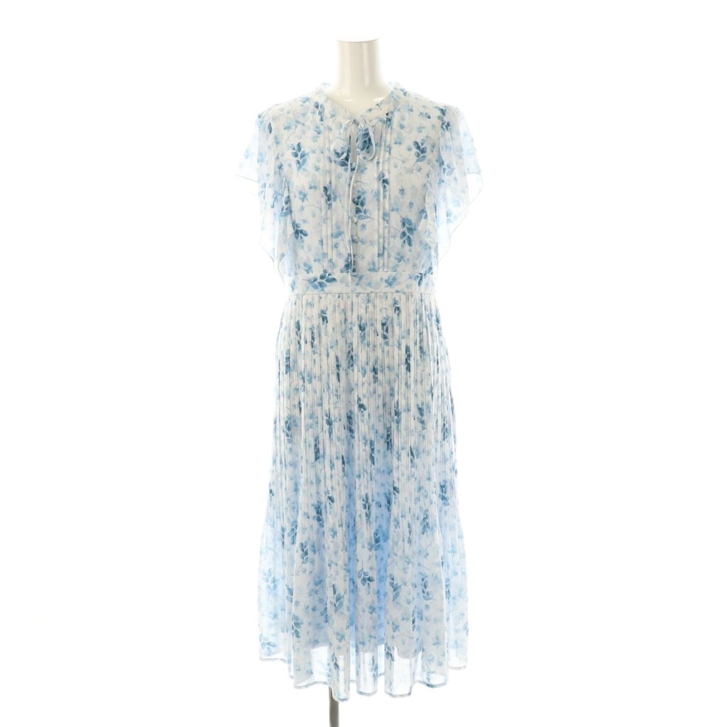 未使用品 インデックス INDEX ぼかしフラワープリーツワンピース ロング L ホワイト ブルー /DF ■OS レディース