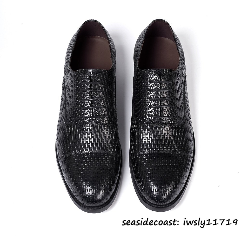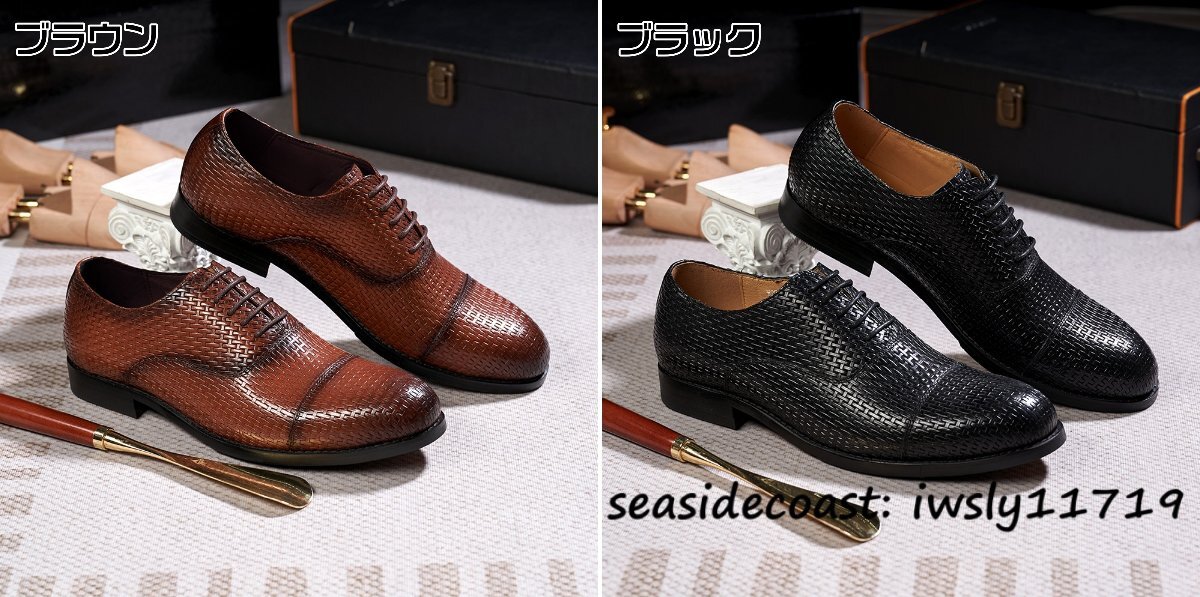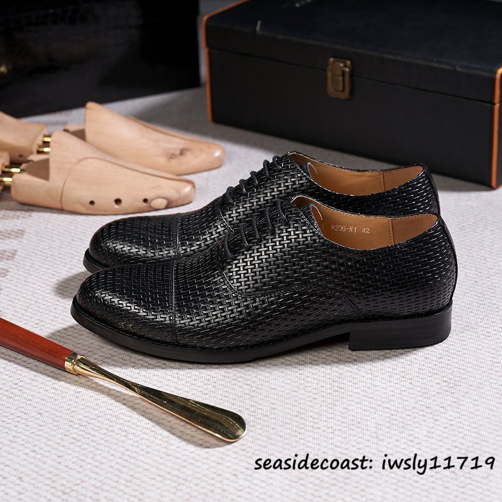 定価9万◆最上級 メンズシューズ 牛革 編み込み ビジネスシューズ 職人手作り 本革 レザーシューズ 紳士靴 革靴 通勤 新品 ブラック 27.5cm