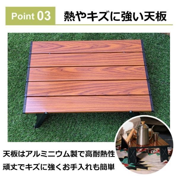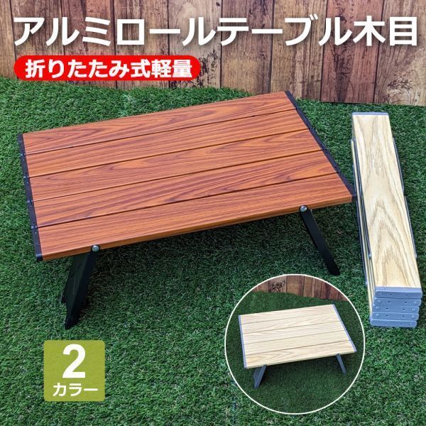 ★☆送料無料 アウトドア ソロテーブル ロールテーブル キャンプ テーブル サイドテーブル アルミ 木目調 ブラウン☆★ |