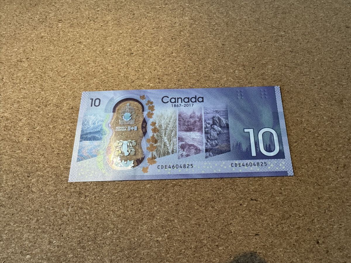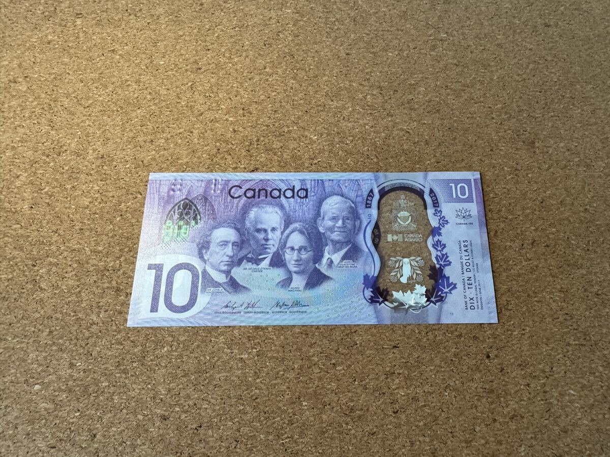 カナダドル 10ドル紙幣(2017年 カナダ建国150周年記念)です。