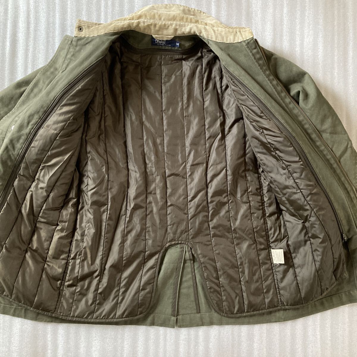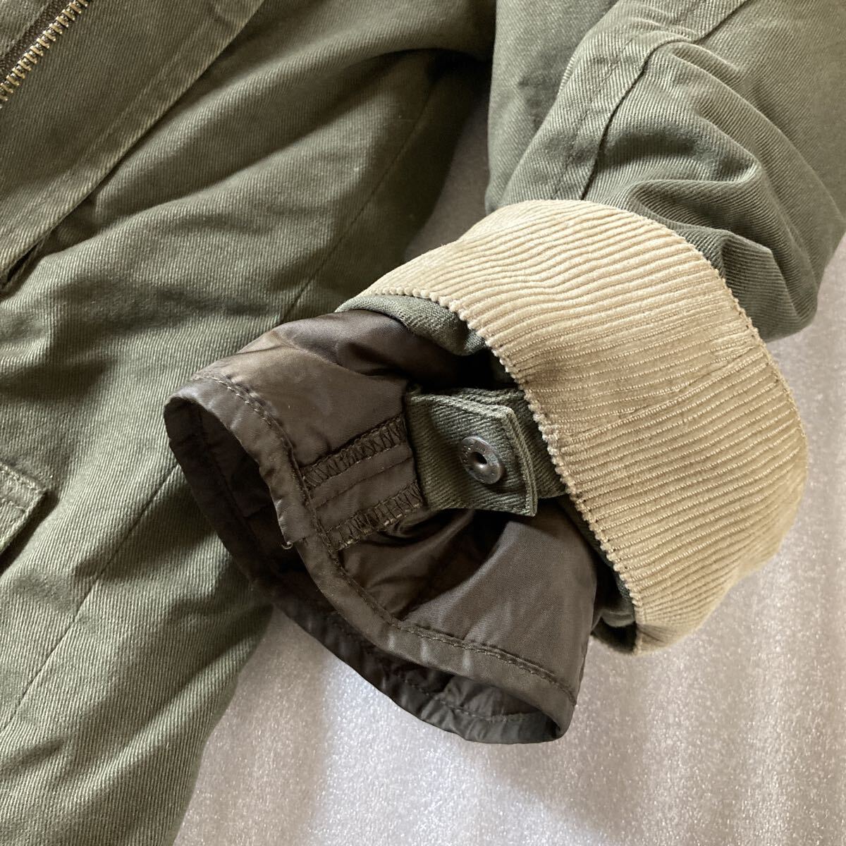 裏地には薄く中綿が入っており着脱できます。また袖口まであり、固定もできます。