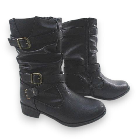 リリオブランコ Lirio blanco 美脚くしゅくしゅエンジニアブーツ 2110 S ブラック 黒系 レザー調 レディース