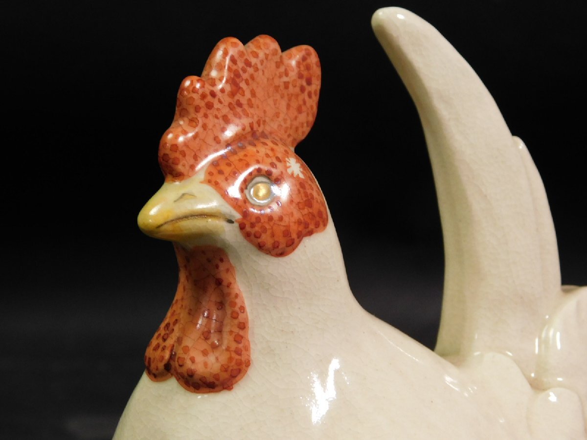 三代伊東陶山 矮鶏 置物 共箱 干支 粟田焼 長期保管品 w250320