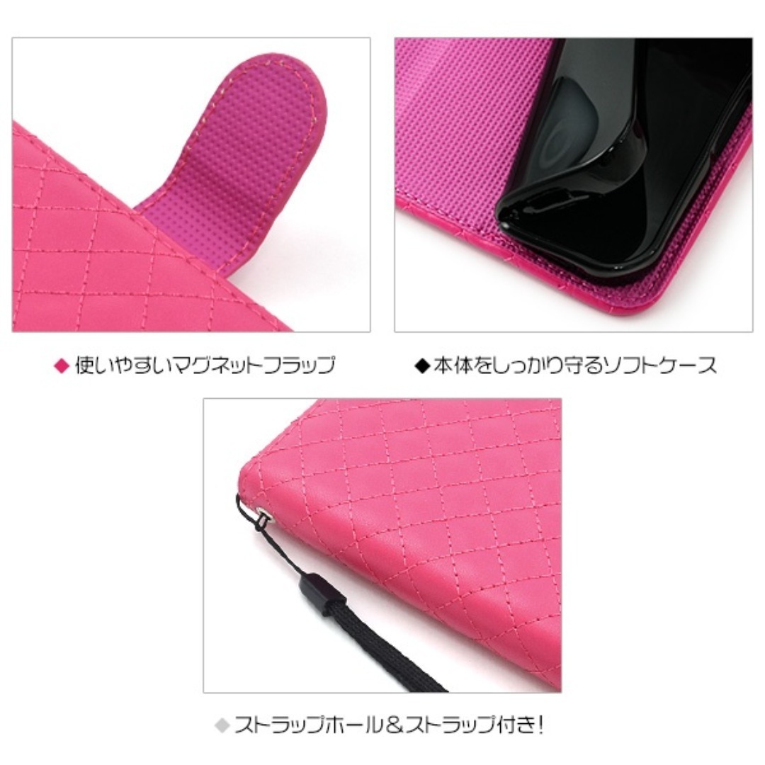 キルティングレザー手帳型ケース 触り心地抜群のキルティングレザーを使用したオシャレな手帳型ケースです。