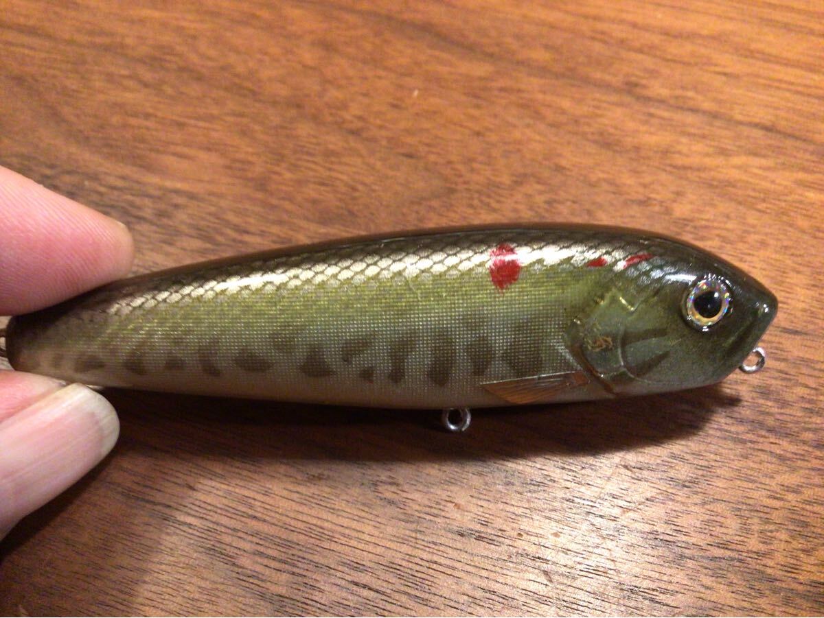 しかしながら素材がウッドなのかプラスチックの何かベースのルアーがあり、カスタムされた物なのか判断が難しいので、サイズやウエイト含め画像で確認後ご検討下さい。