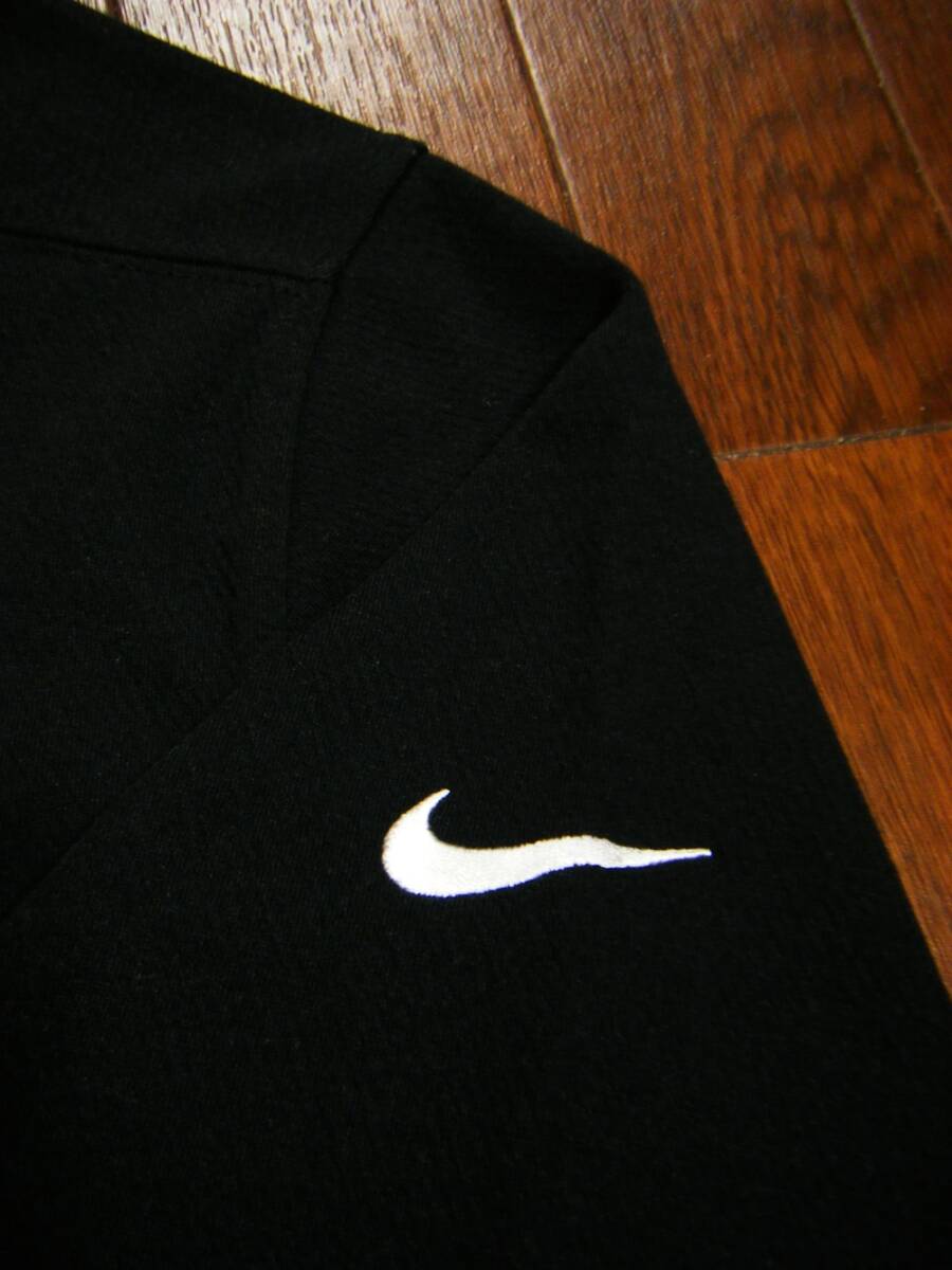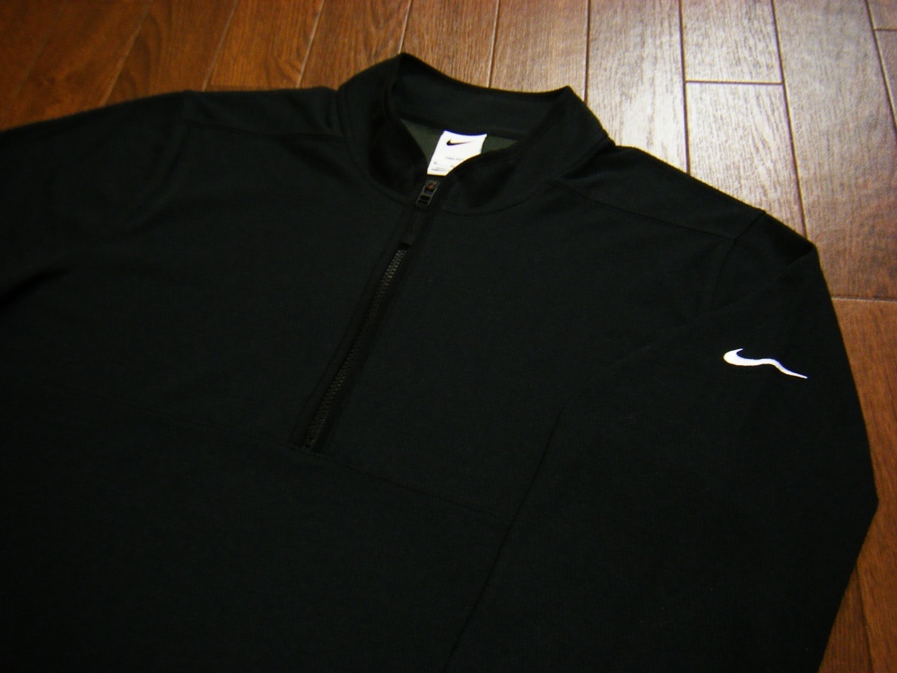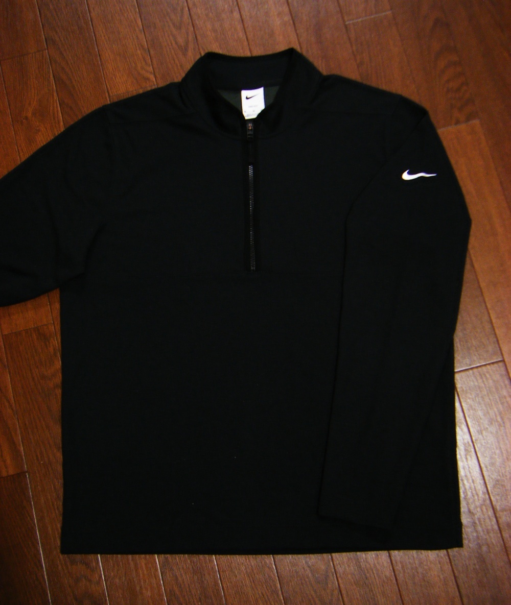 超伸縮/良品〇NIKE GOLF ニット プルオーバー XL 薄手 切り返し ハーフジップ 刺しゅうロゴ 黒色