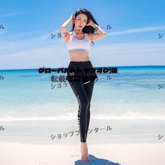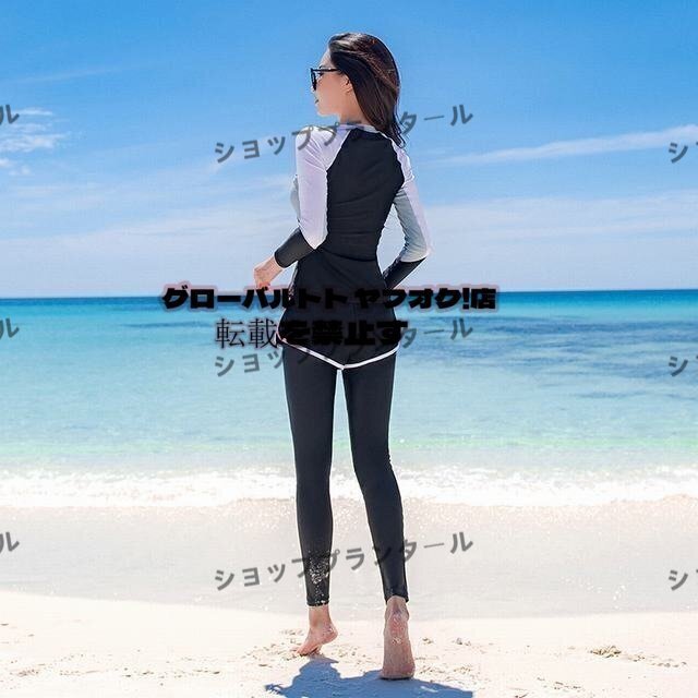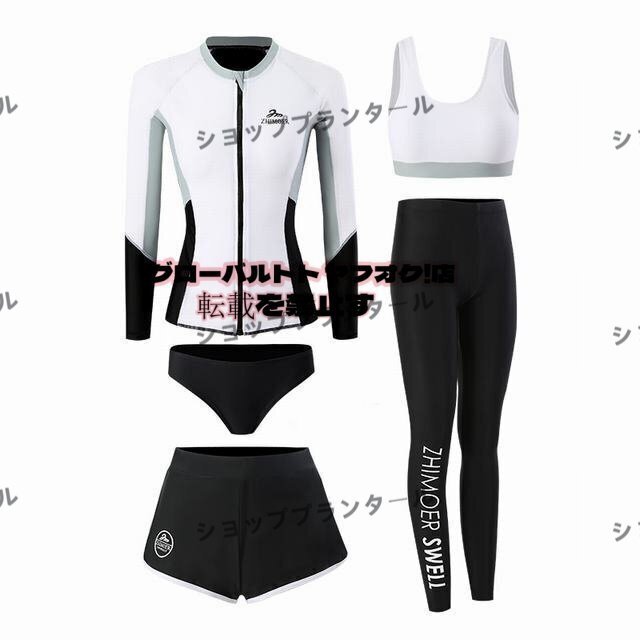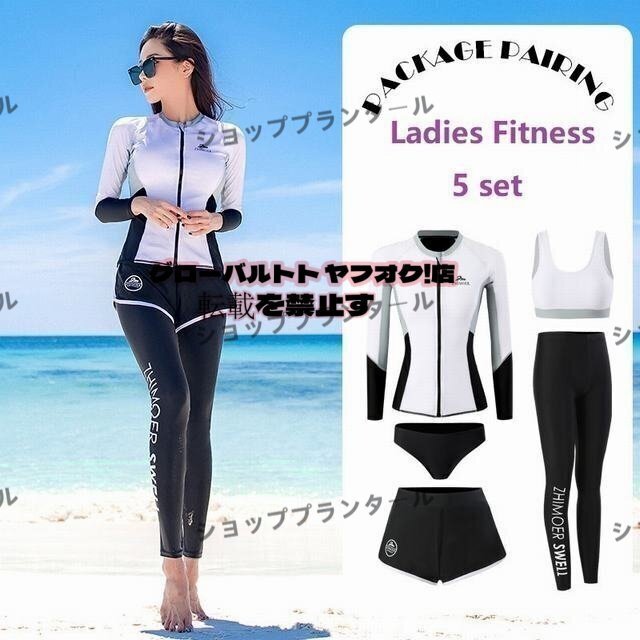 フィットネス水着 レディース 上下セット ワンピース水着 長袖 水陸両用 ジム スポーツ スイムウェア UVカット 5点セット 女子 サイズXL