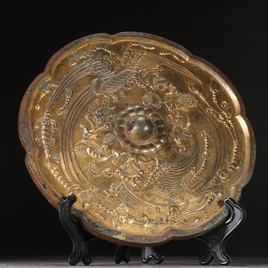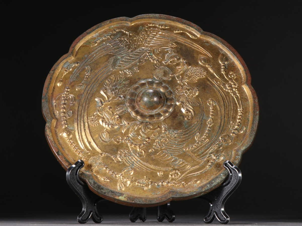 【安】唐時代 銅胎施金 鳳紋銅鏡 極細工 古置物 古擺件 中国古美術 古美味 時代物 古董品 198 サイズ(約寸) |